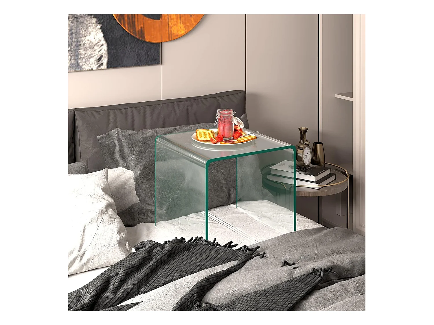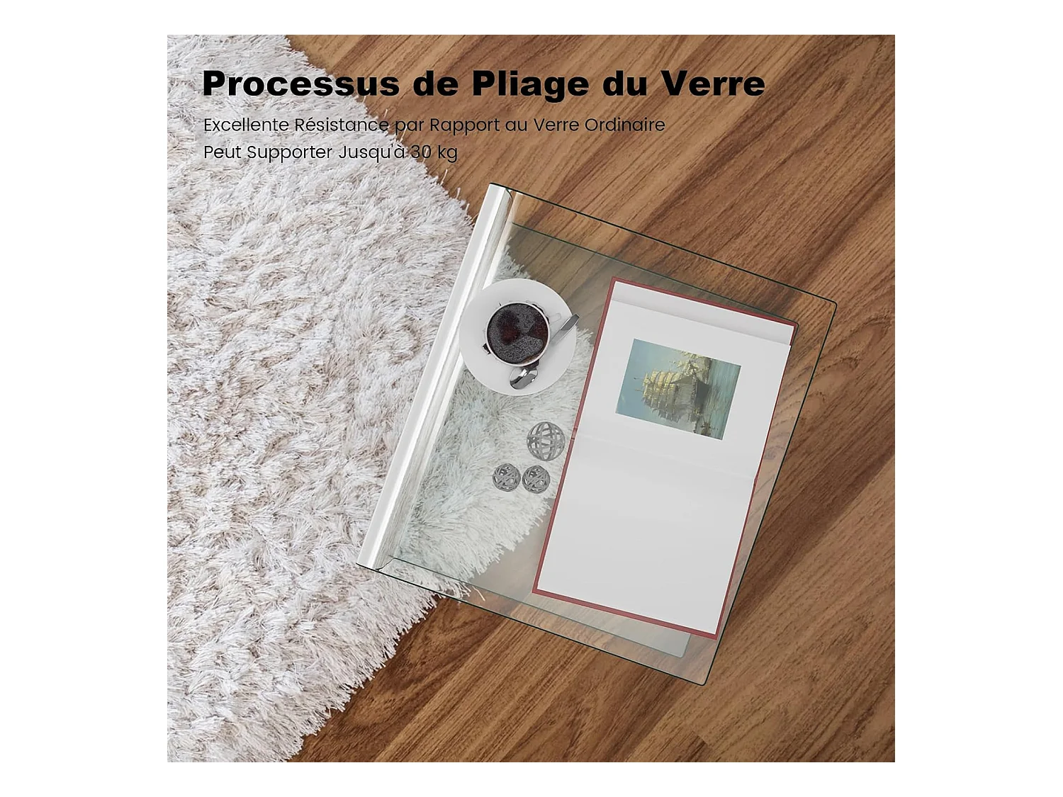 Table basse en verre, table basse transparente, bords arrondis lisses, 45 x 45 x 41 cm,