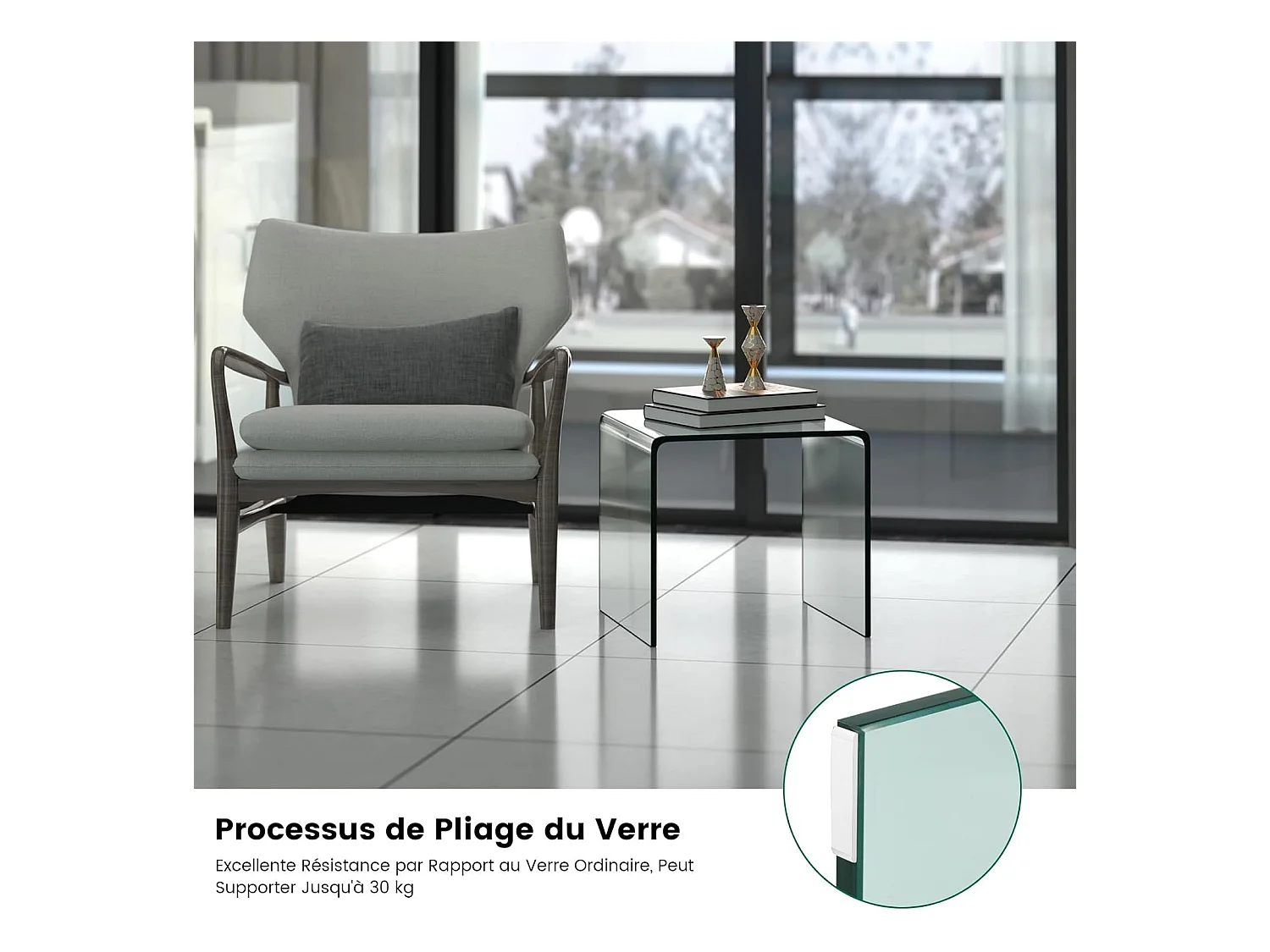 Table gigogne verre trempé transparent Kays - Lot de 3