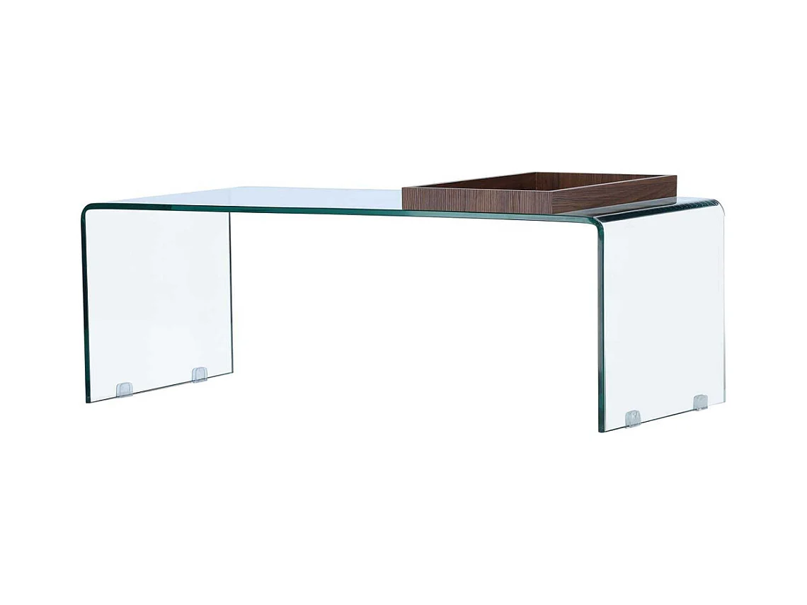 Table basse verre transparent et pied bois noyer Luni L 110cm