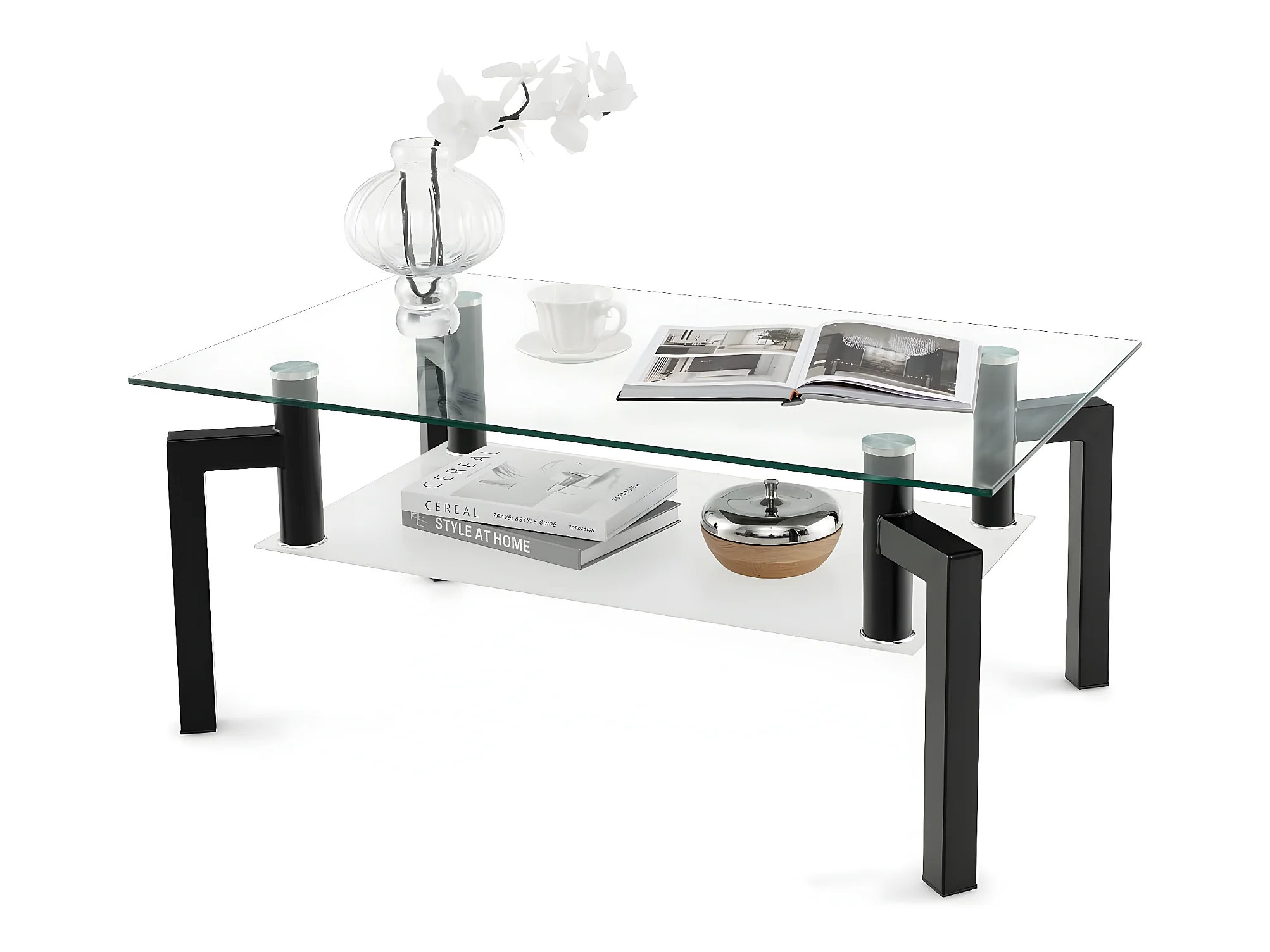 Table Basse en Verre trempé à 2 Niveaux, Table Basse Salon à 4 Pieds en Fer, 100 x 60 x 43 cm
