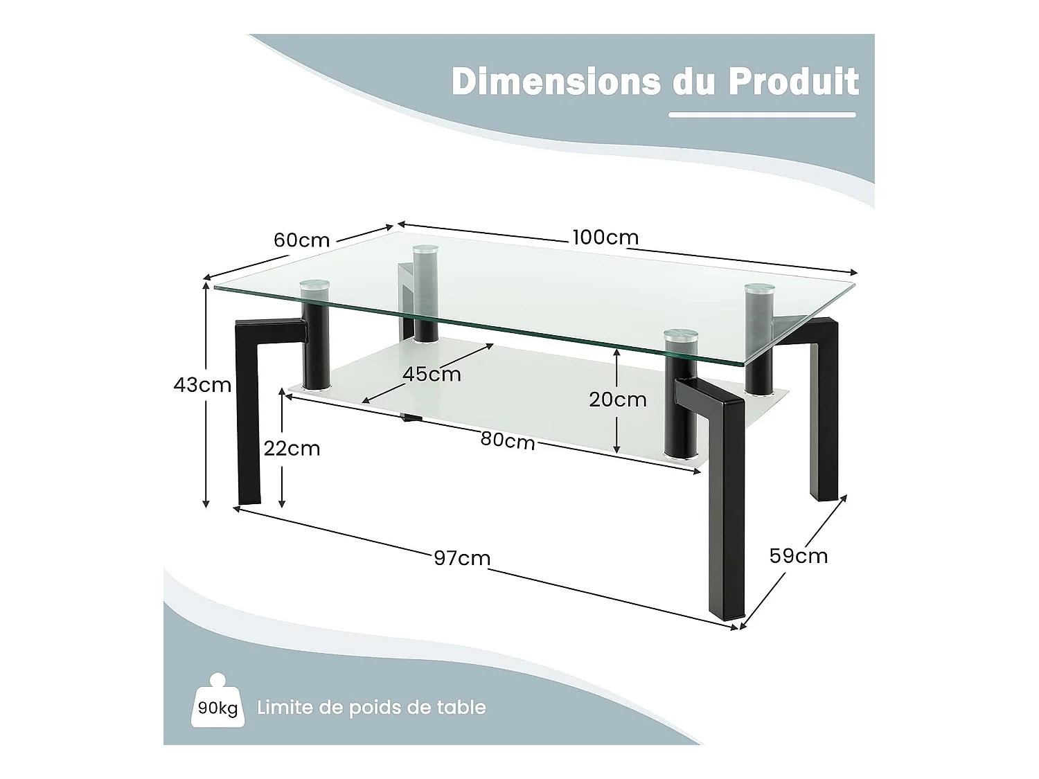 Table basse 98x45x30 cm Verre trempé Transparent FR12023