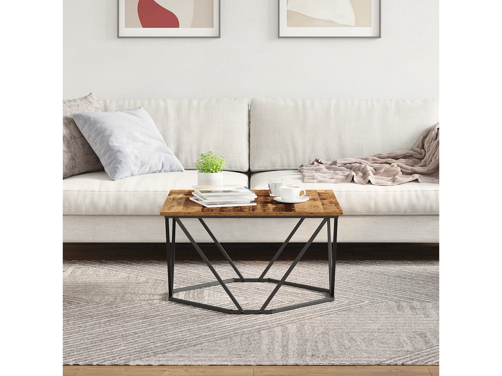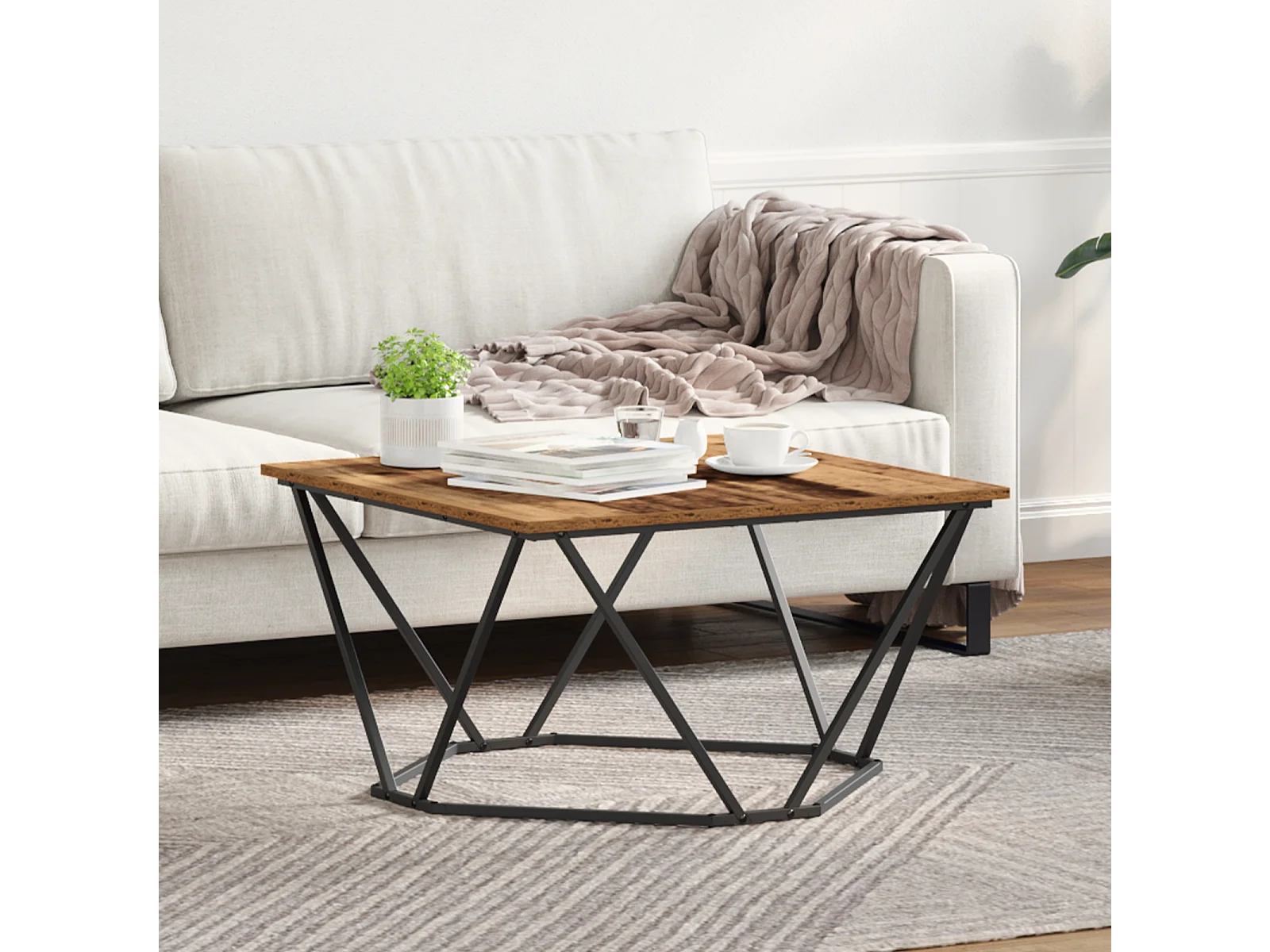 Table basse chêne sonoma 80x80x45 cm bois d'ingénierie et métal