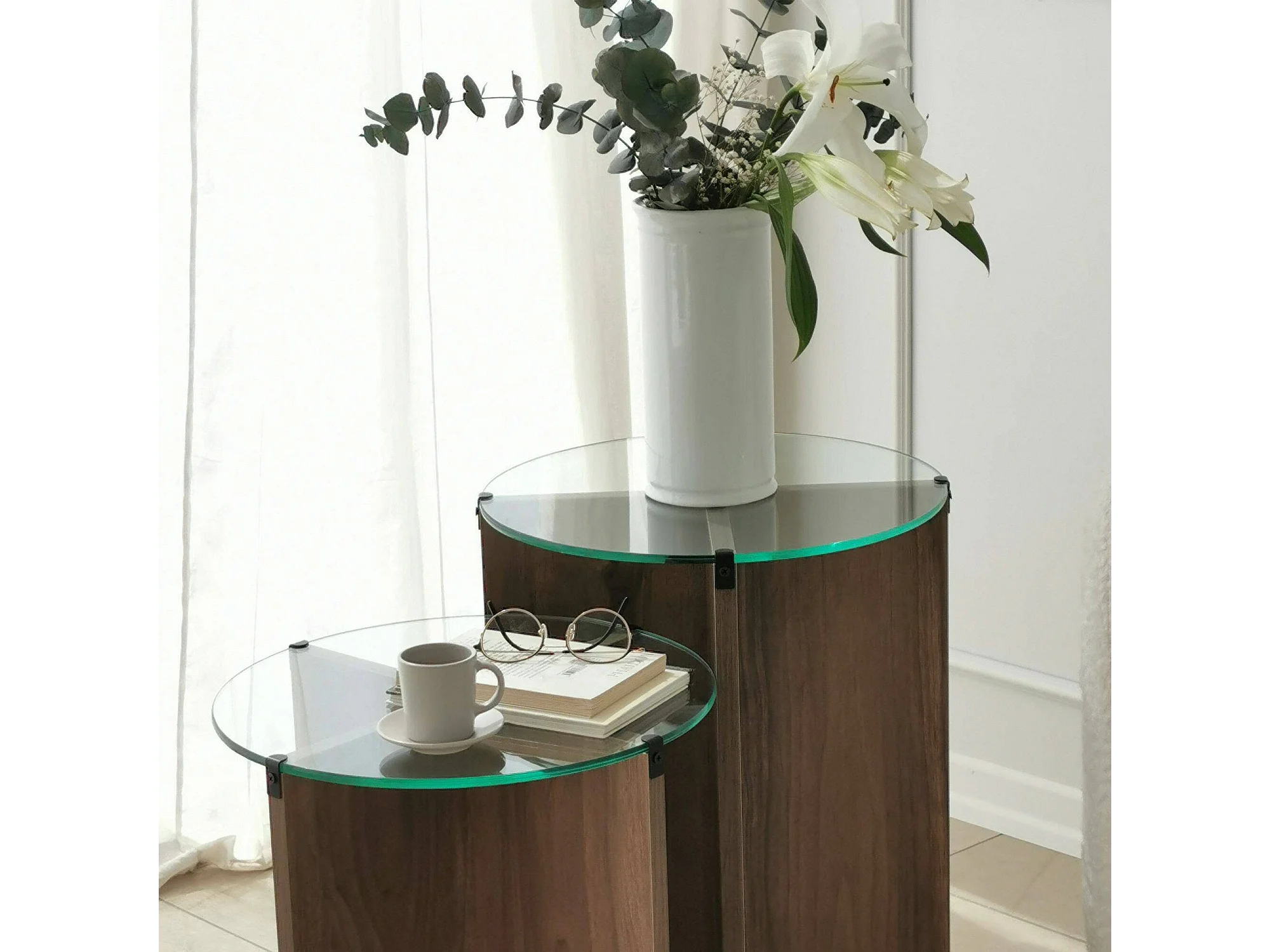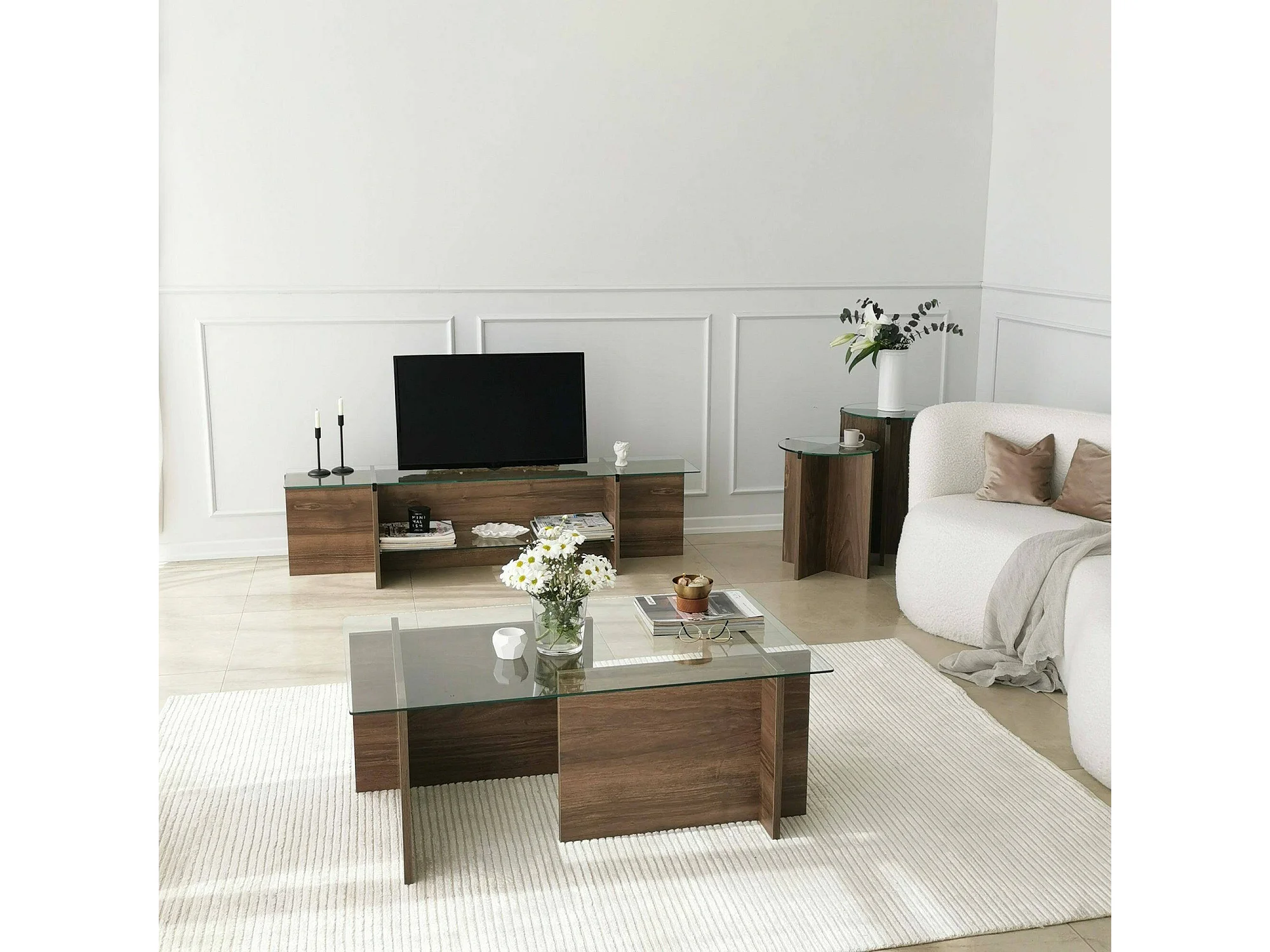 Table basse Enki, Table basse, Porte-revues pour canapé, Etagère de salon, 40x40h60 cm, Noyer