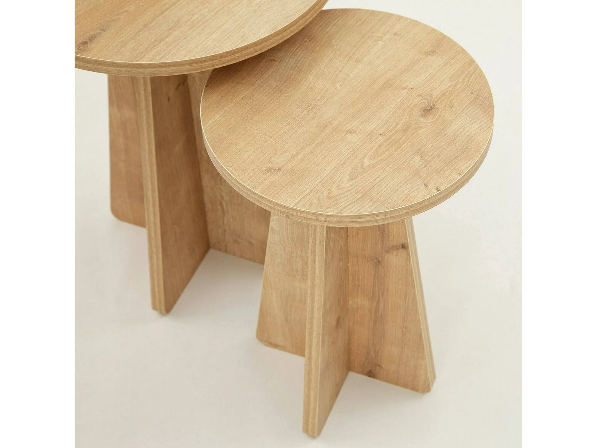 Lot de 2 tables basses rondes, design moderne, MDF, couleur bois (70 x 70 x 45 cm & 45.5 x 44 cm)
