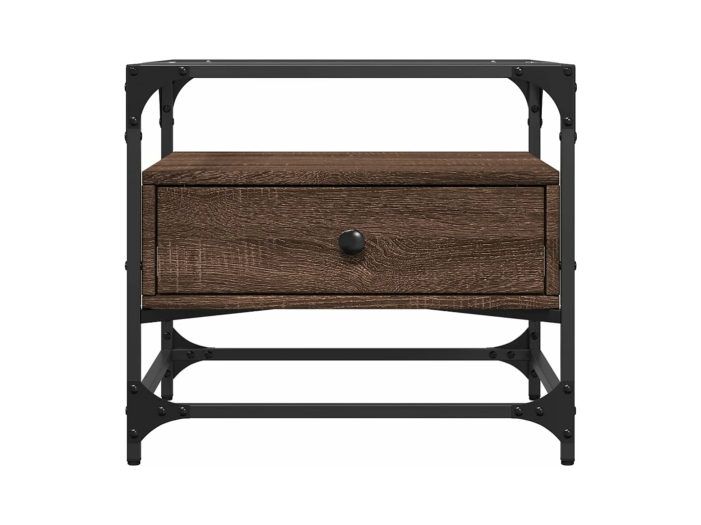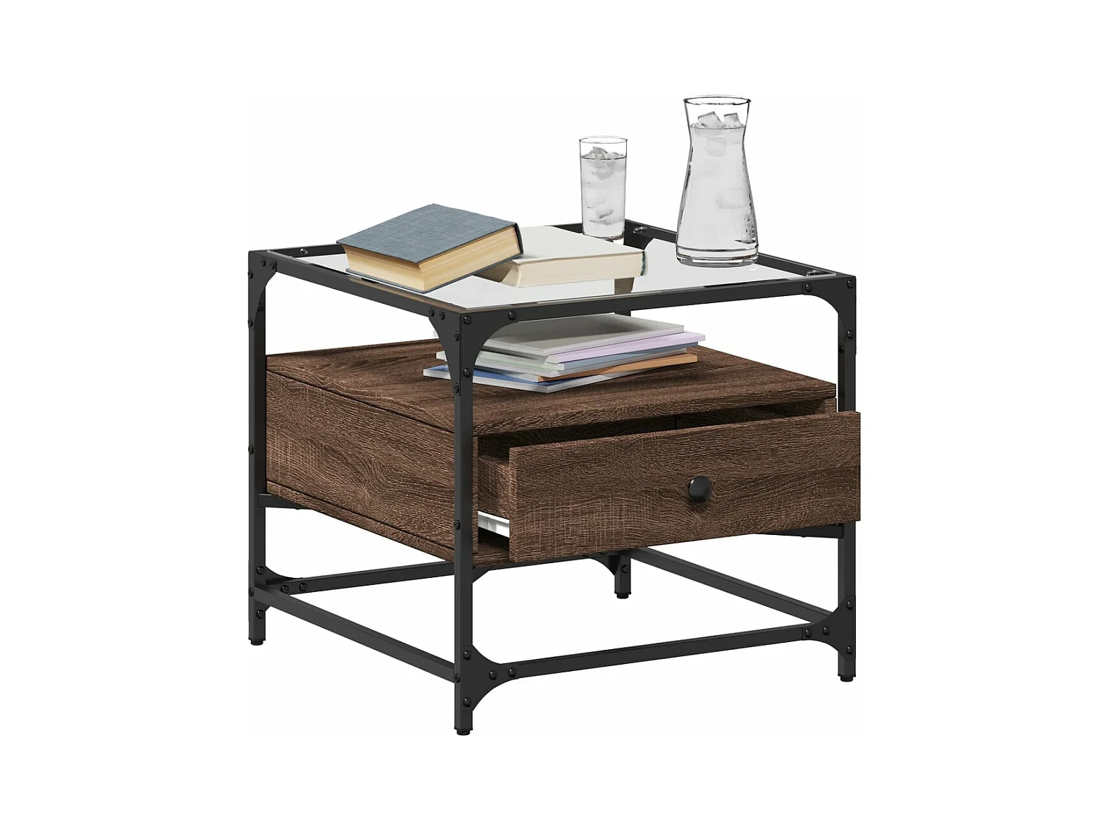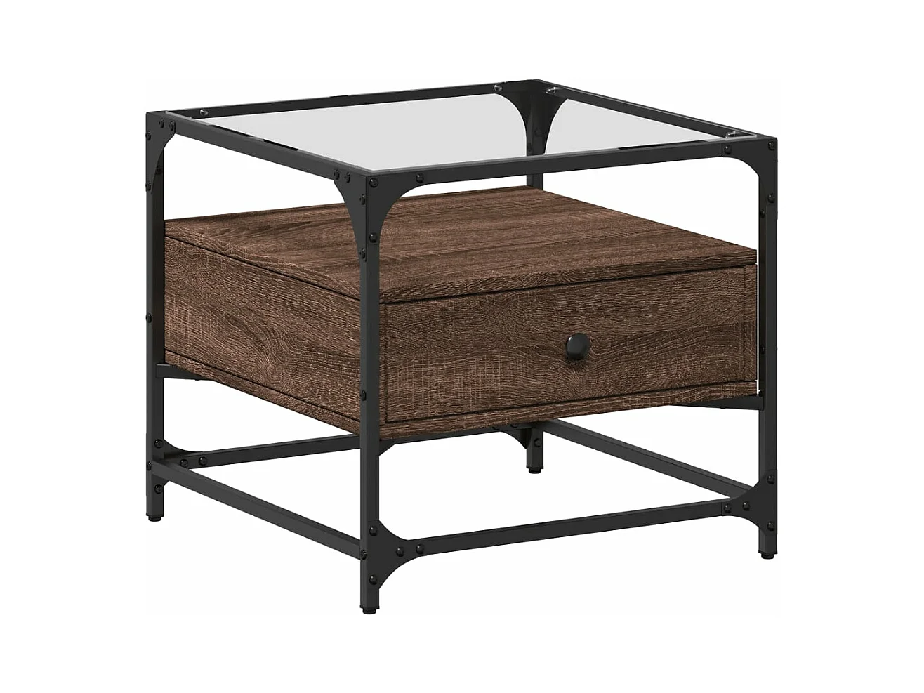 Table basse avec dessus en verre chêne fumé 50x50x45 cm acier