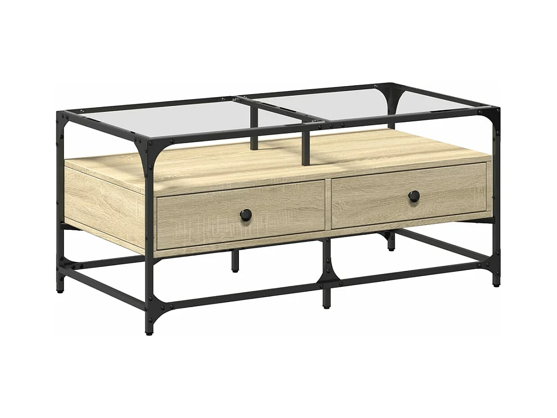Table basse et dessus en verre chêne sonoma 98,5x50x45 cm acier