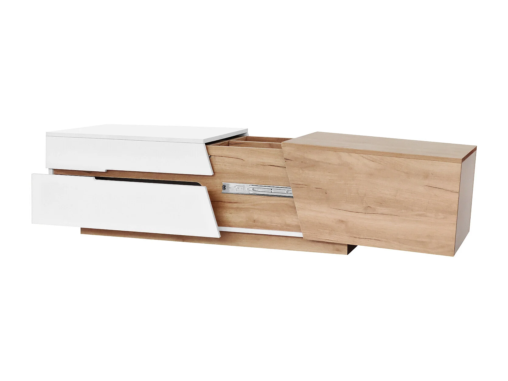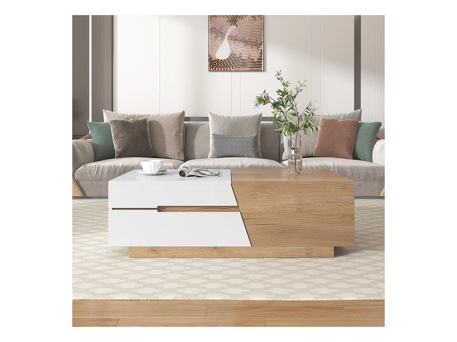 Table basse extensible 120x50x37.5cm, table basse rectangle avec tiroirs, structure color block, Naturel