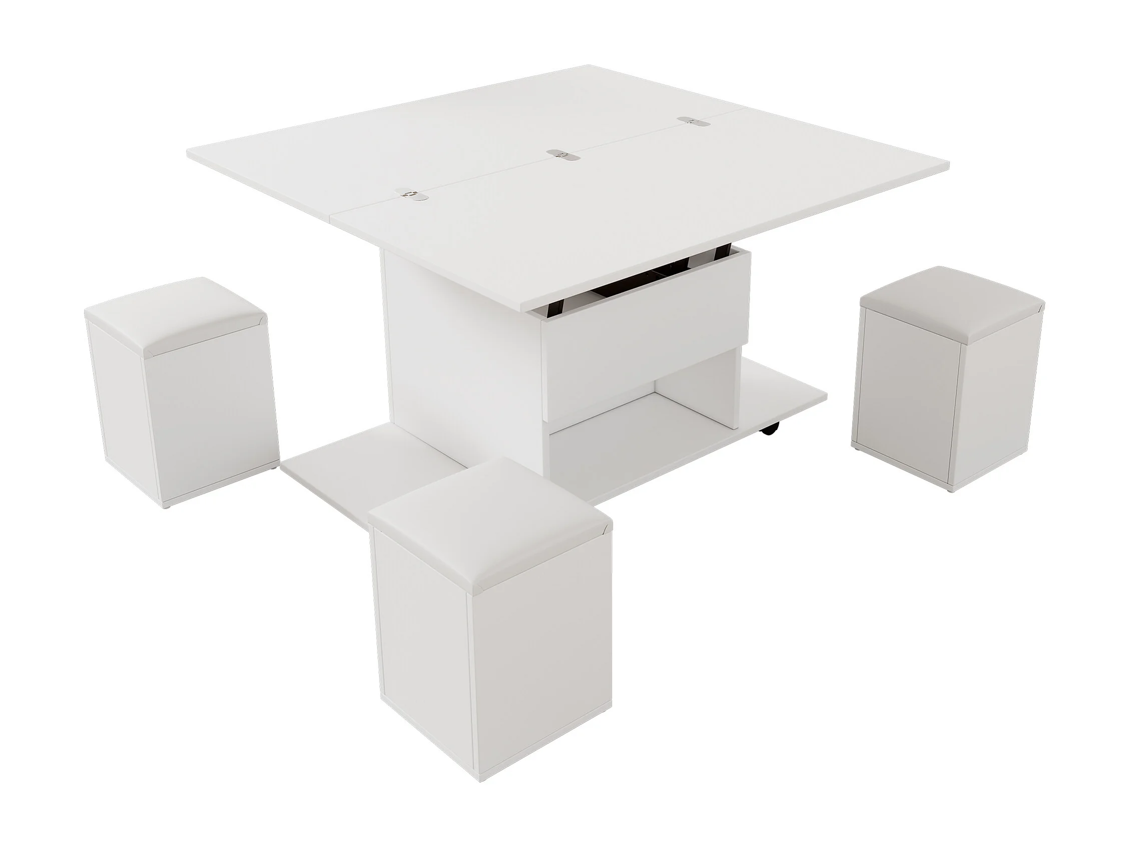 Table basse extensible mécanisme relevage double multifonction blanc salon bureau salle à manger