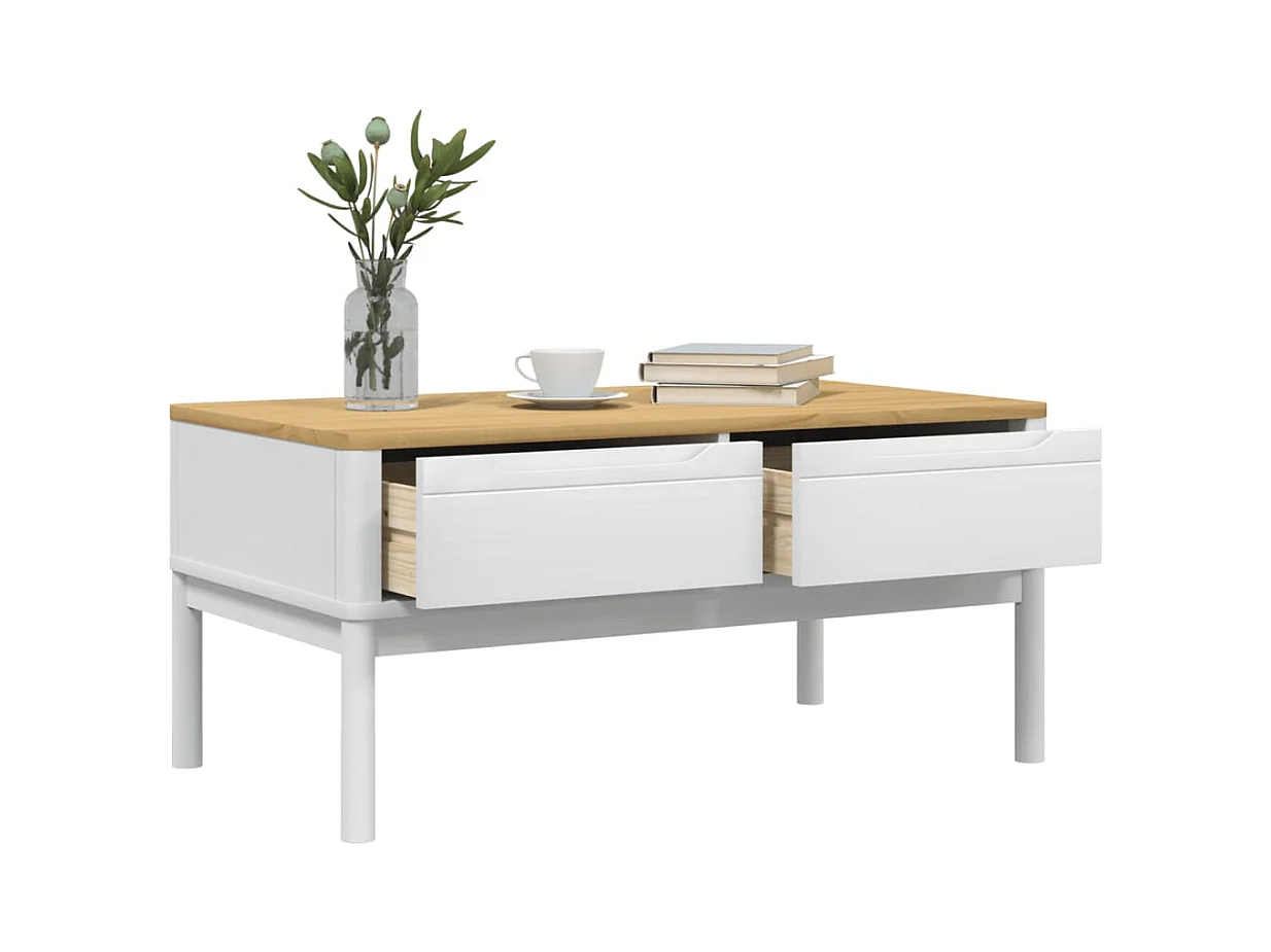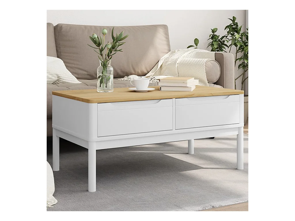 Table basse Drammen Blanc 99 x 55 x 45 cm Bois massif en pin