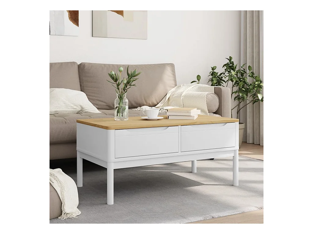 Table basse FLORO blanc 99x55,5x45 cm bois massif de pin FR46633