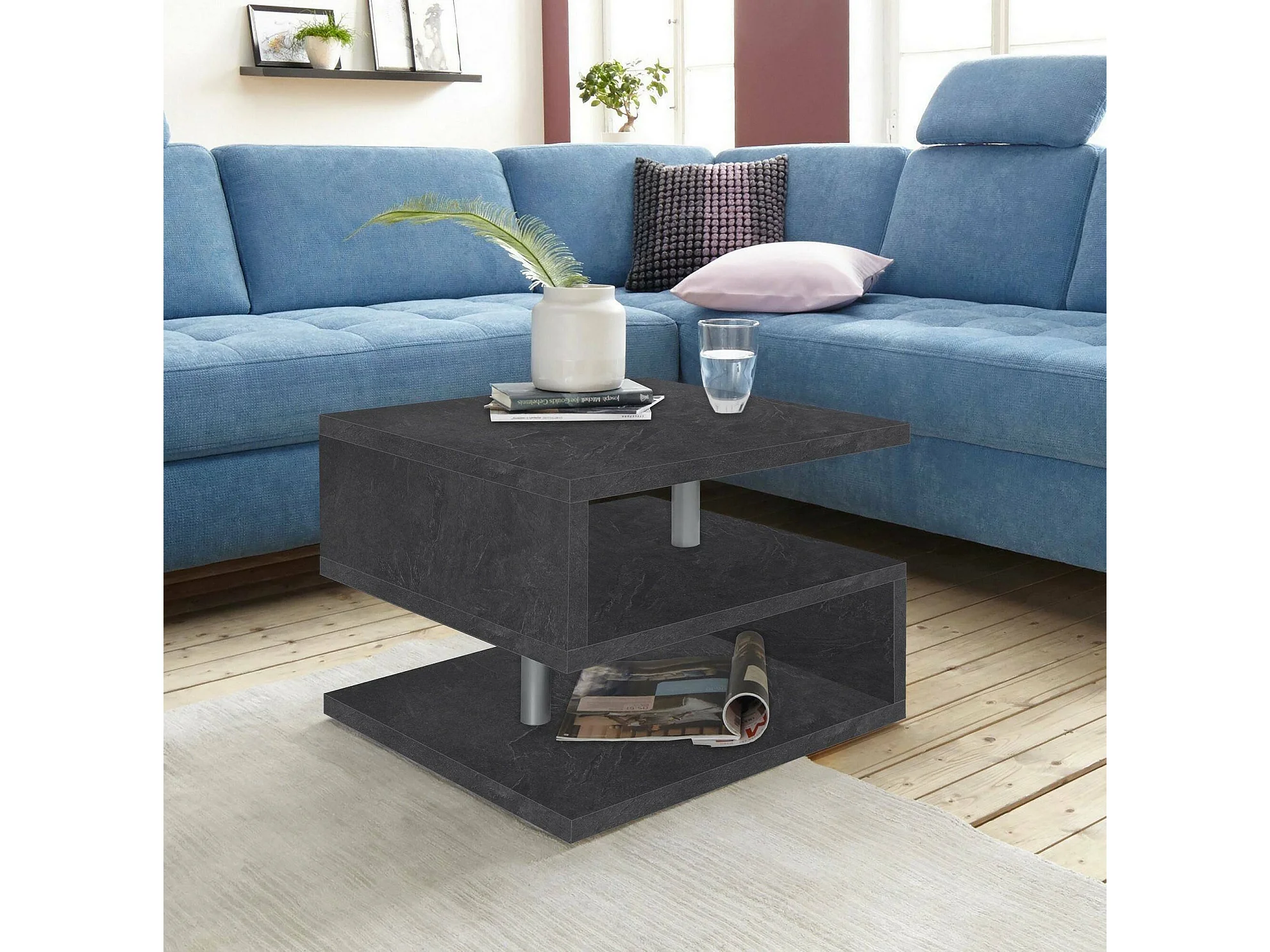Table basse Gianni, Table basse de salon, Meuble de rangement bas, Table basse, 55x55h41 cm, Ardoise