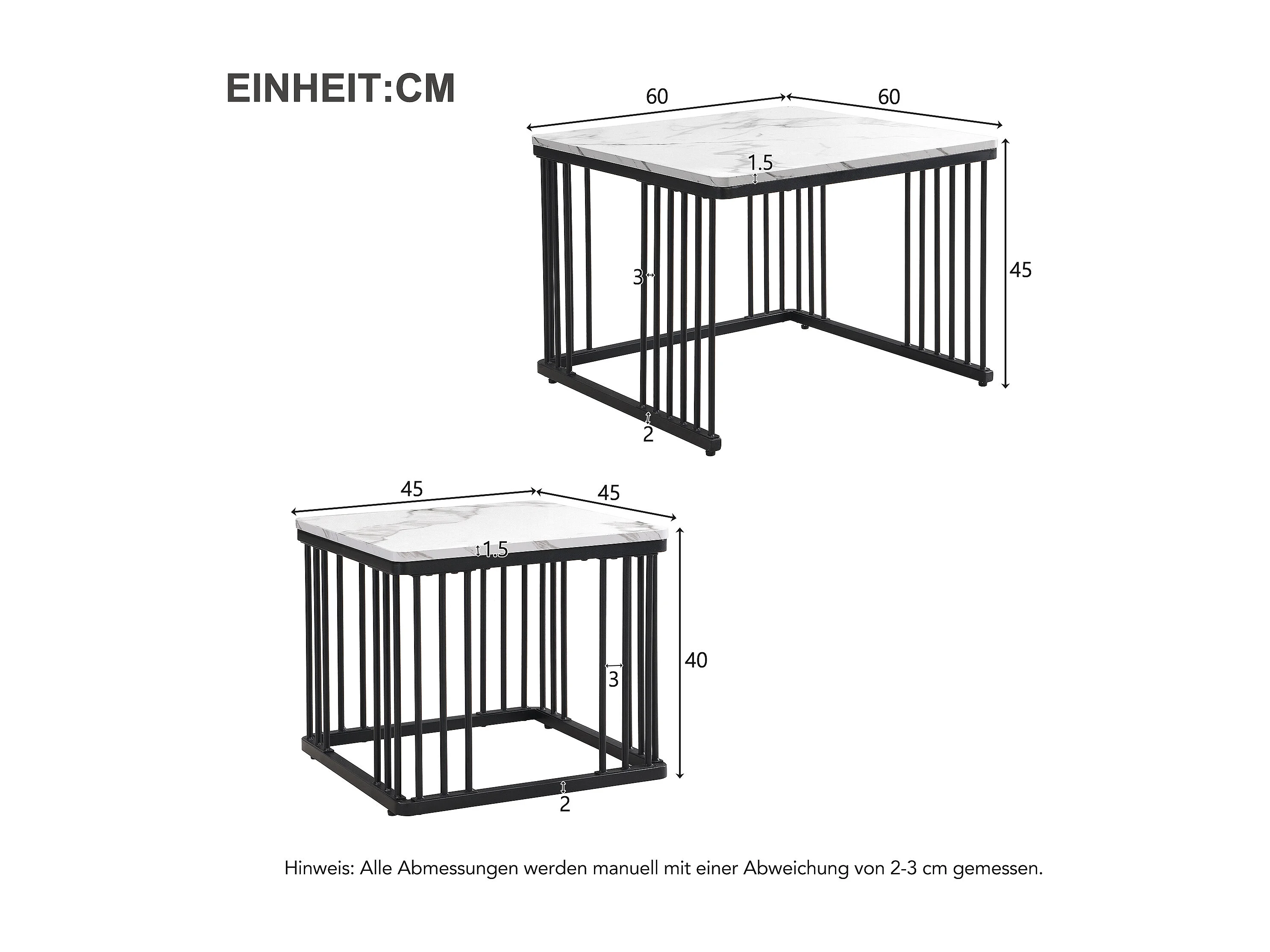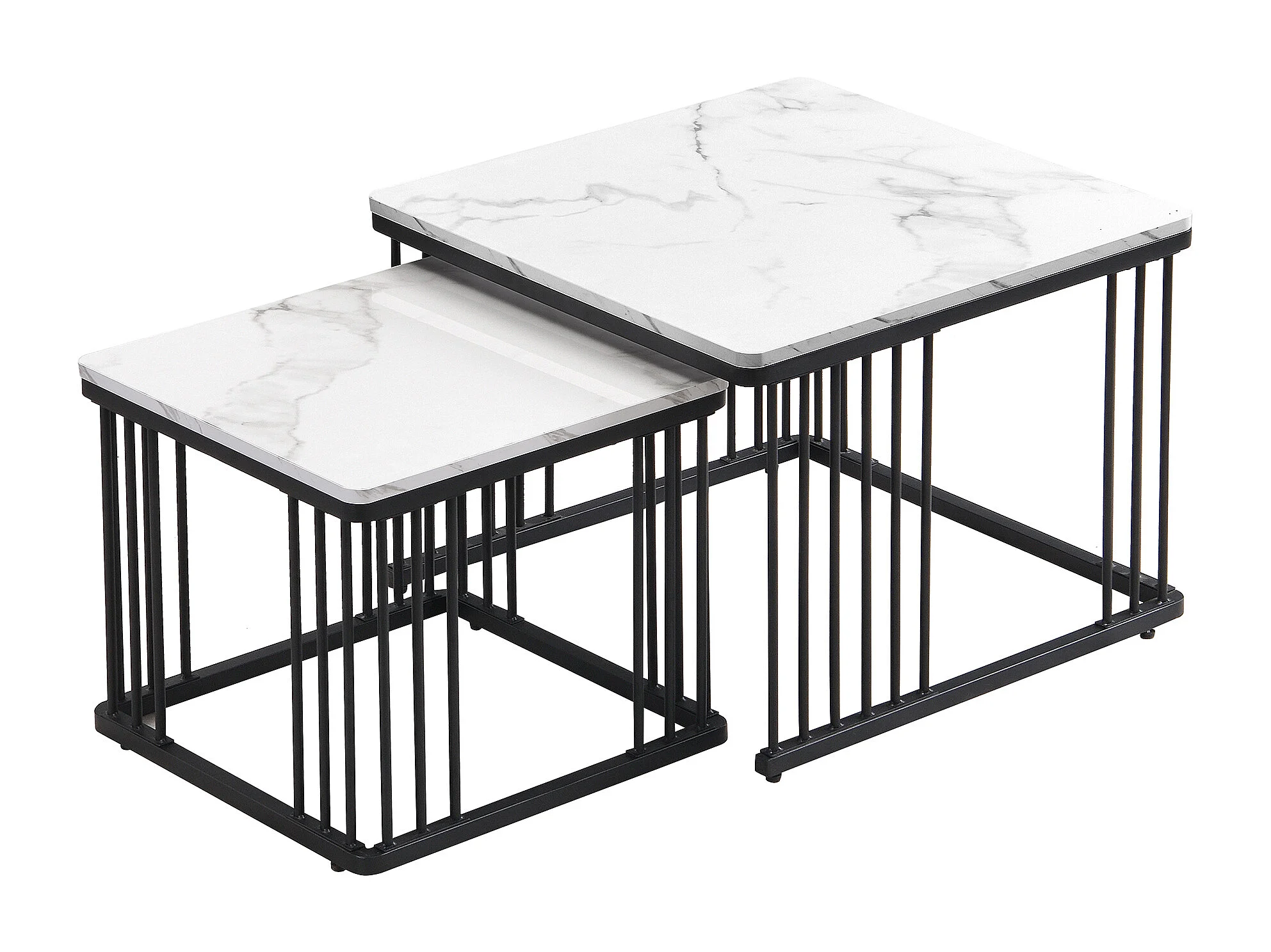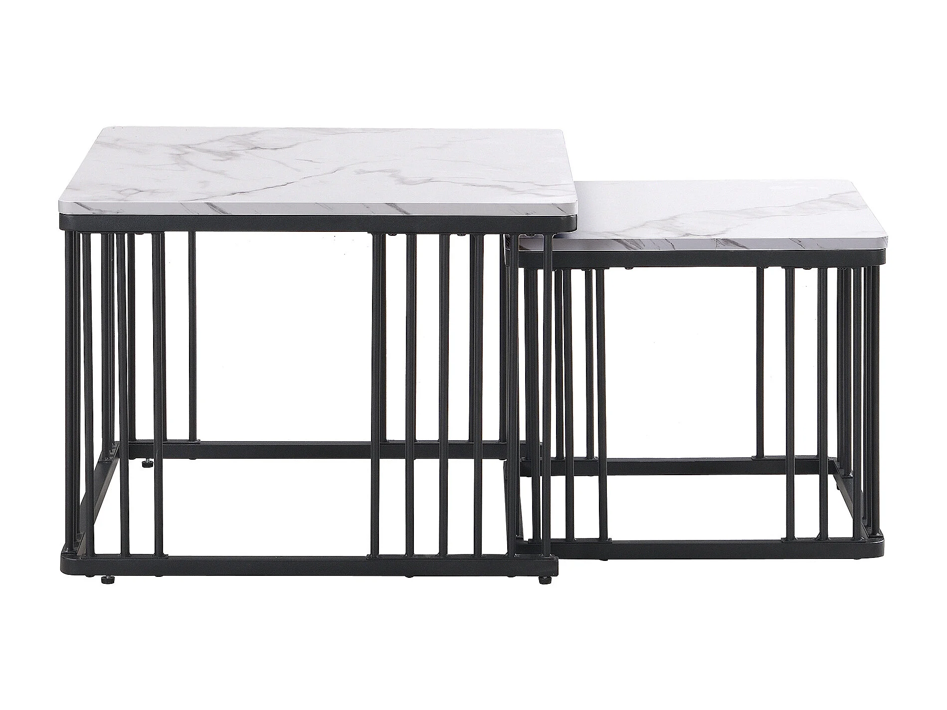 Table basse gigogne en placage effet marbre blanche- Pieds noirs