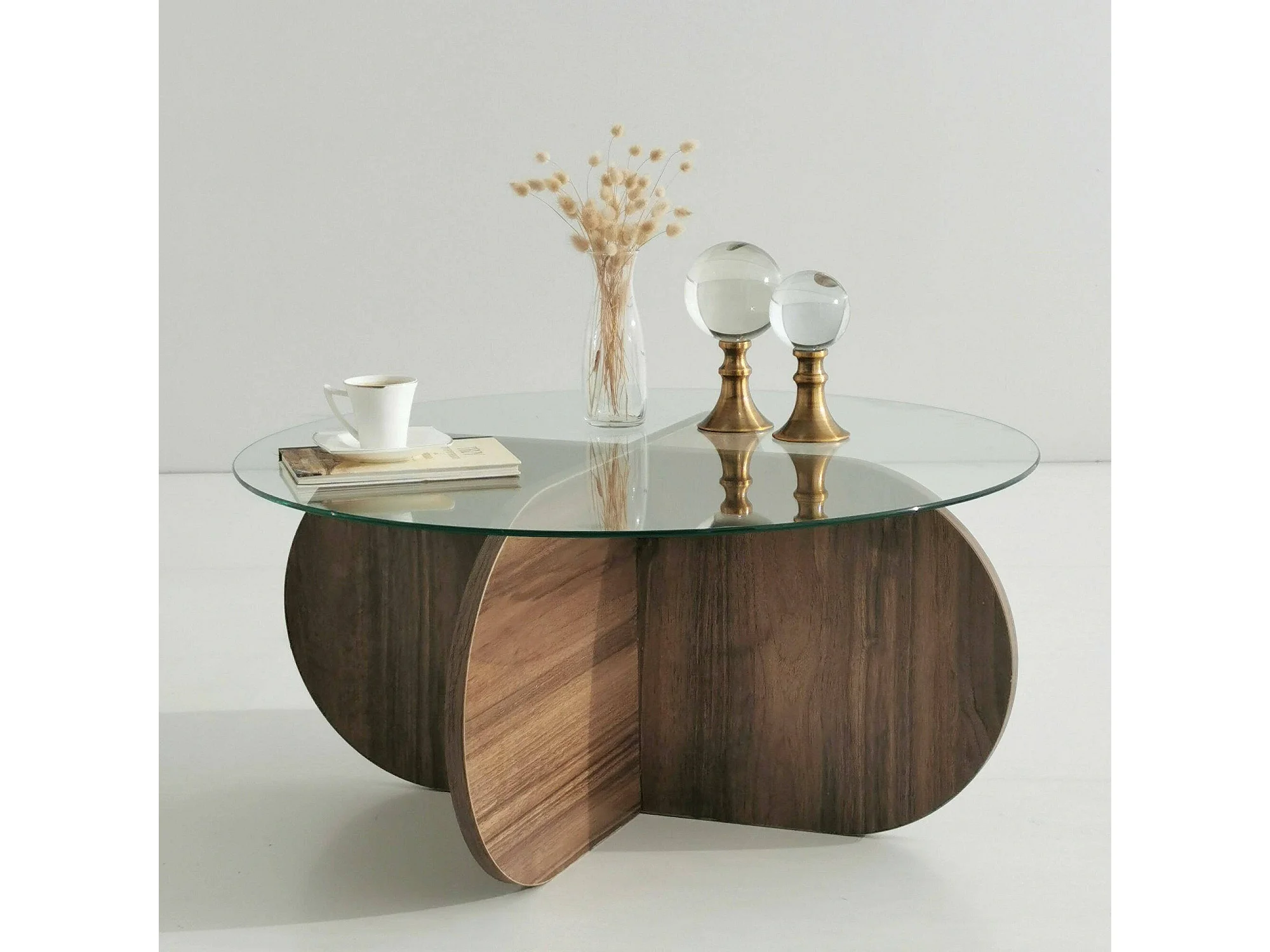 Table basse Gliese, Table basse, Porte-revues pour canapé, Etagère de salon, 75x75h35 cm, Noyer