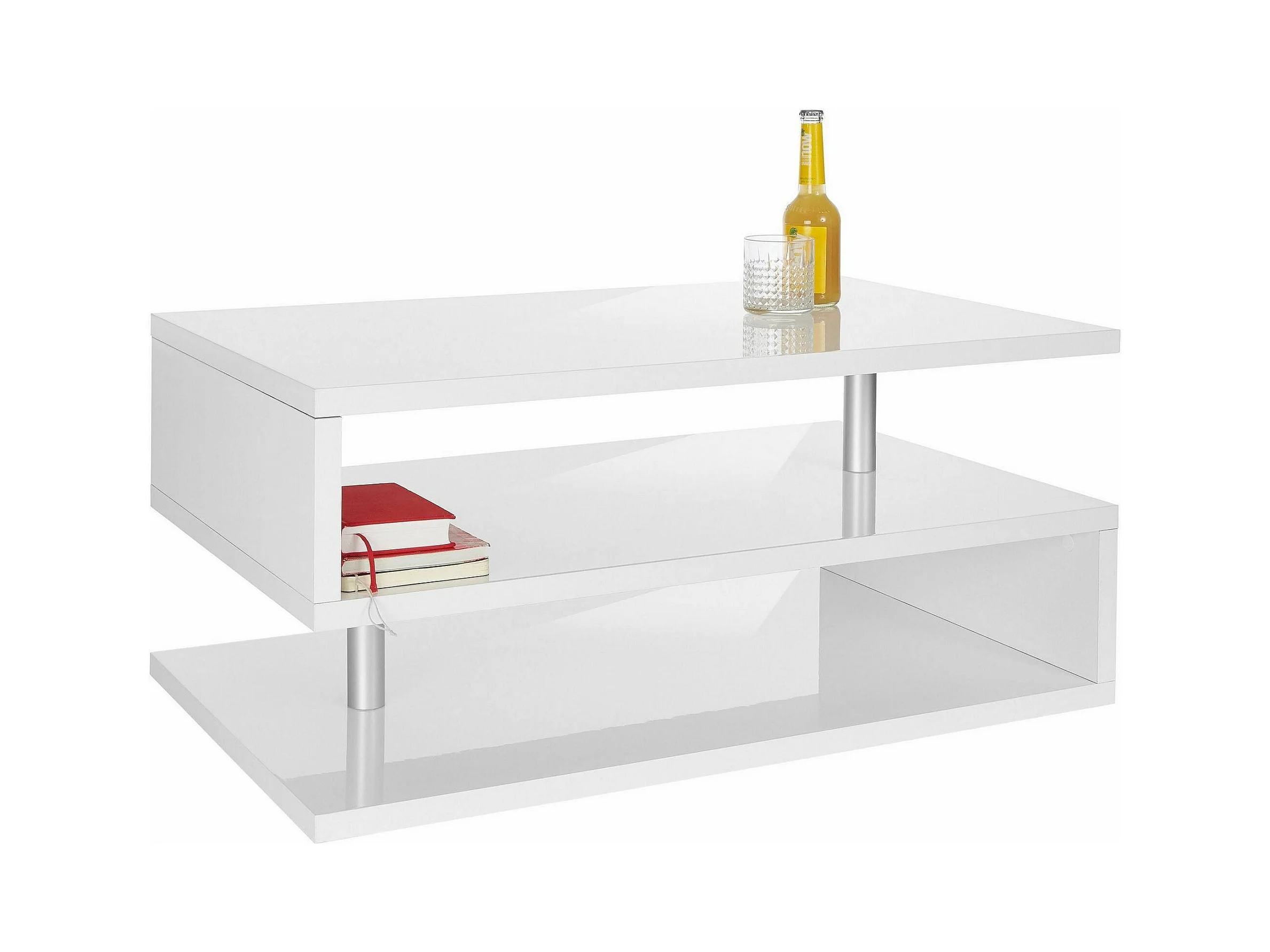 Table basse Goffredo, Table basse de salon, Meuble de rangement bas, Table basse, 90x55h41 cm, Blanc brillant