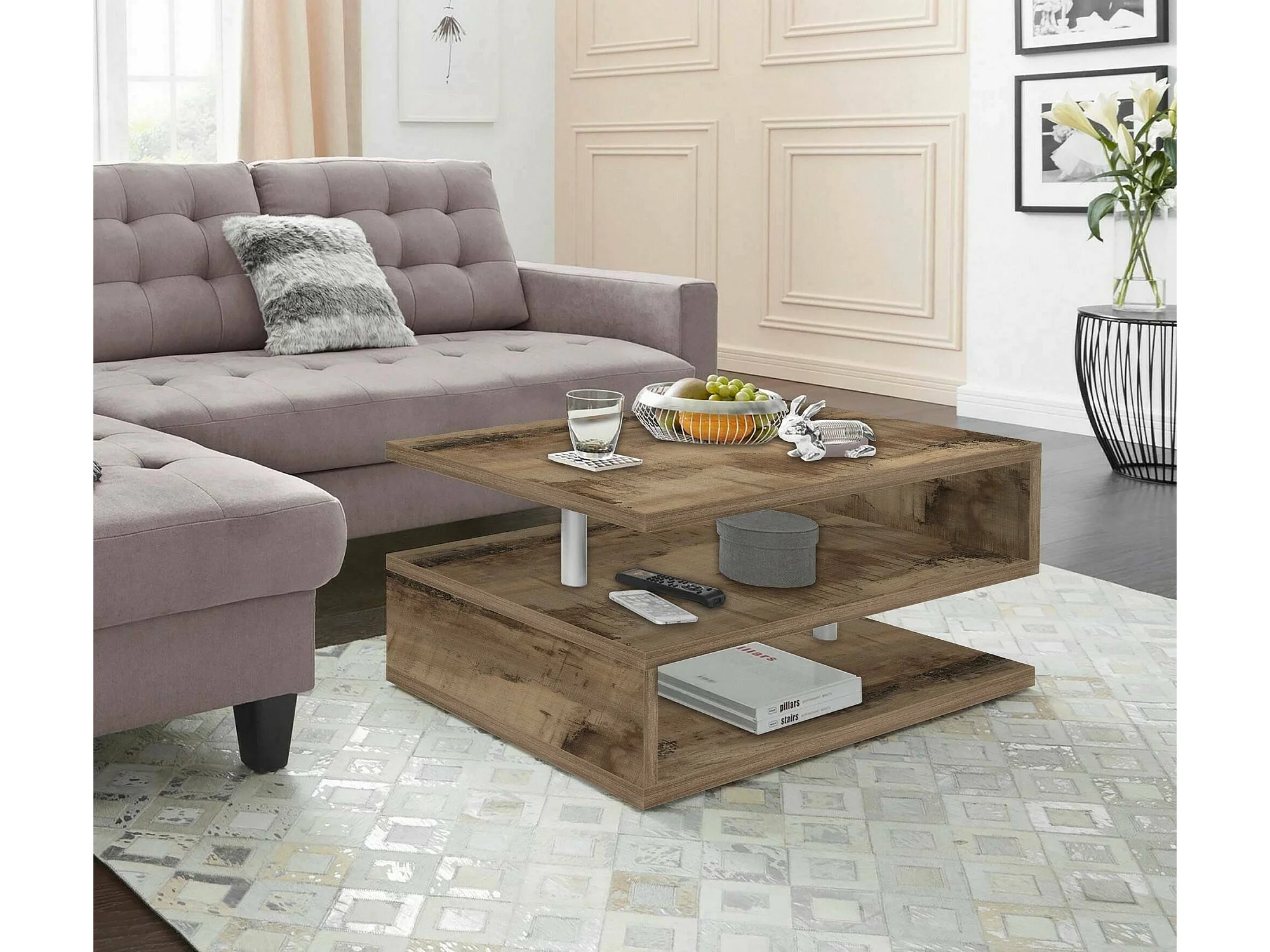Table basse Goffredo, Table basse de salon, Meuble de rangement bas, Table basse, 90x55h41 cm, Érable