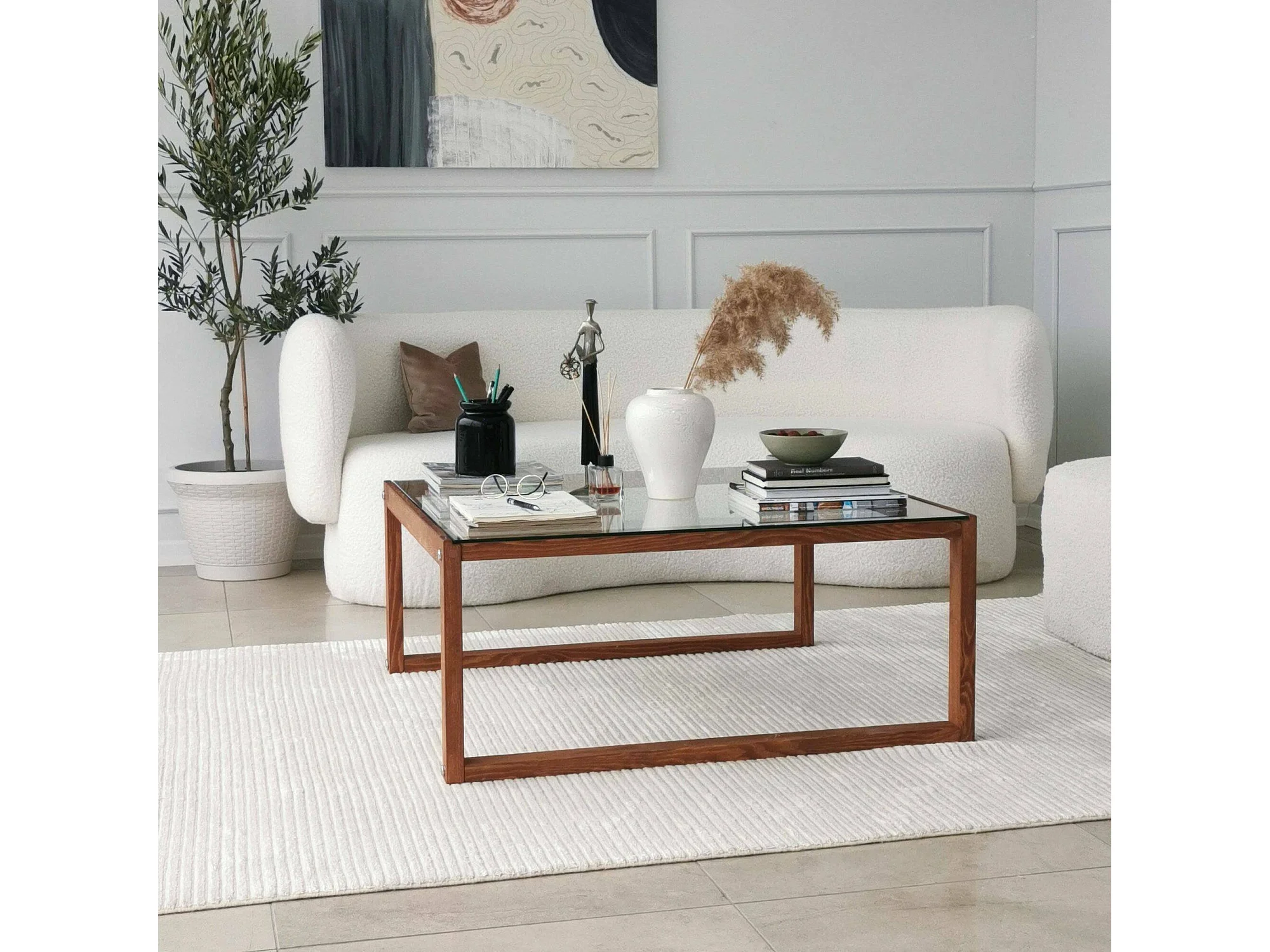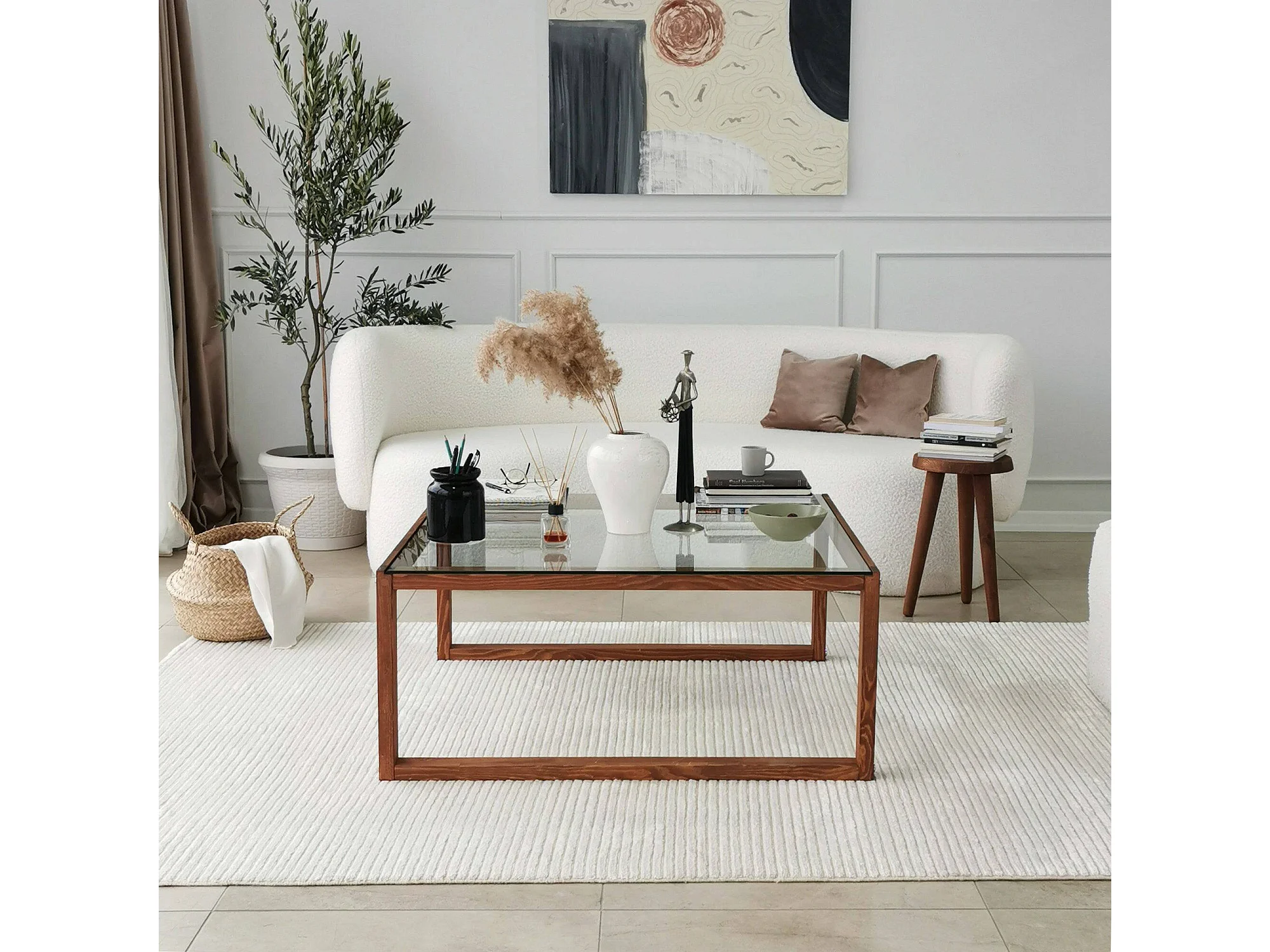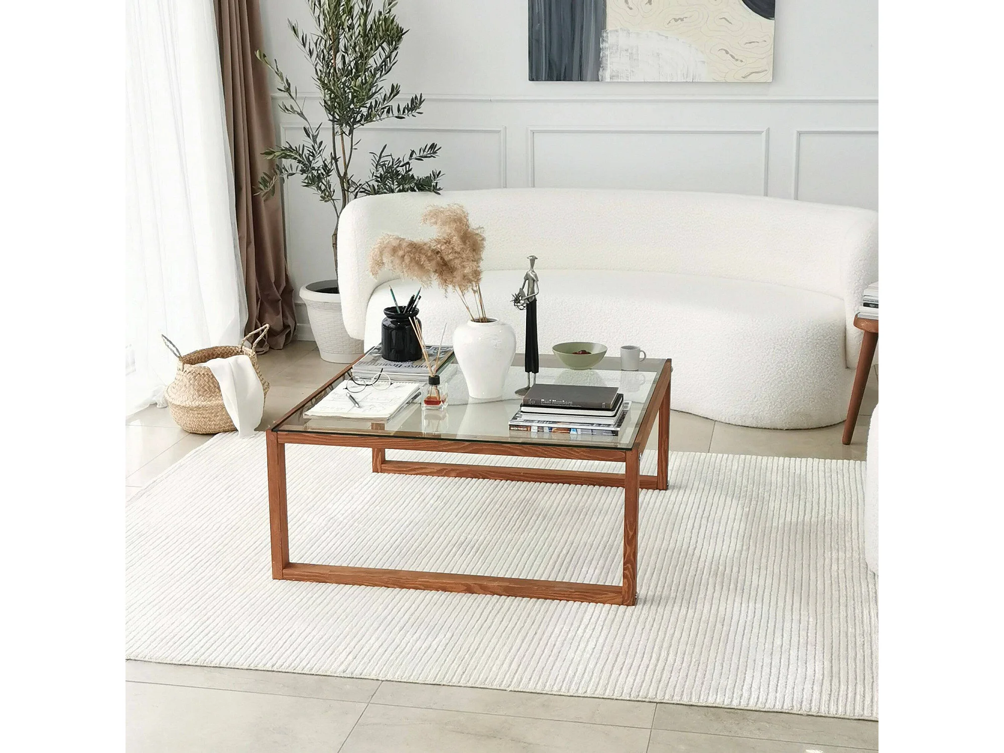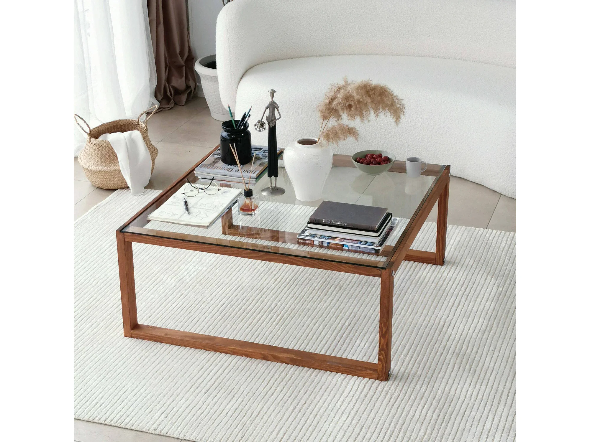 Table basse Gomeisa, Table basse, Porte-revues pour canapé, Etagère de salon, 90x90h40 cm, Noyer