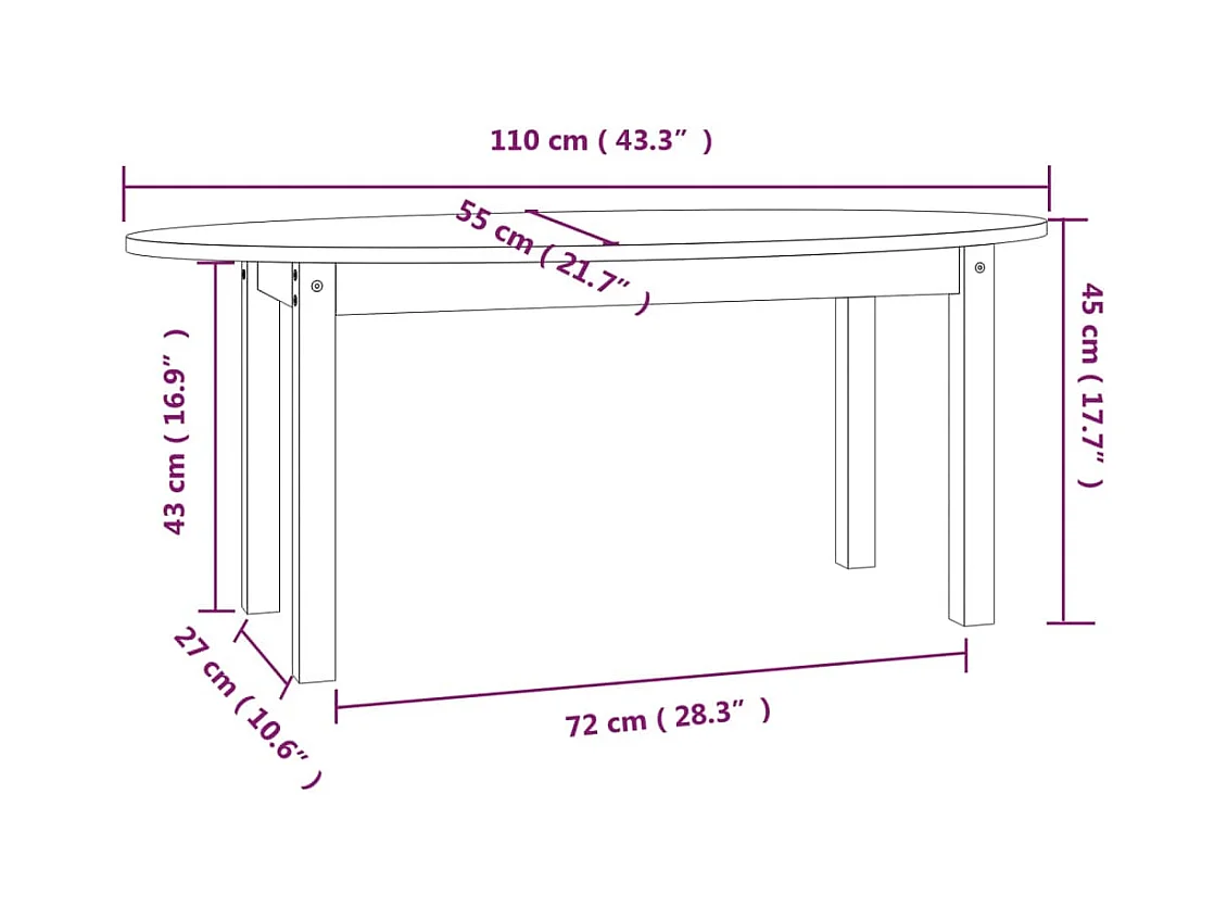 Table basse Gris Ø 55x45 cm Bois massif de pin