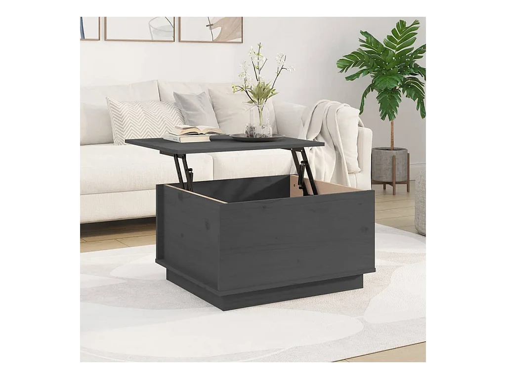 Table basse relevable Gris 60x50x35 cm Bois massif de pin OFR44752 BonneVie Meuble