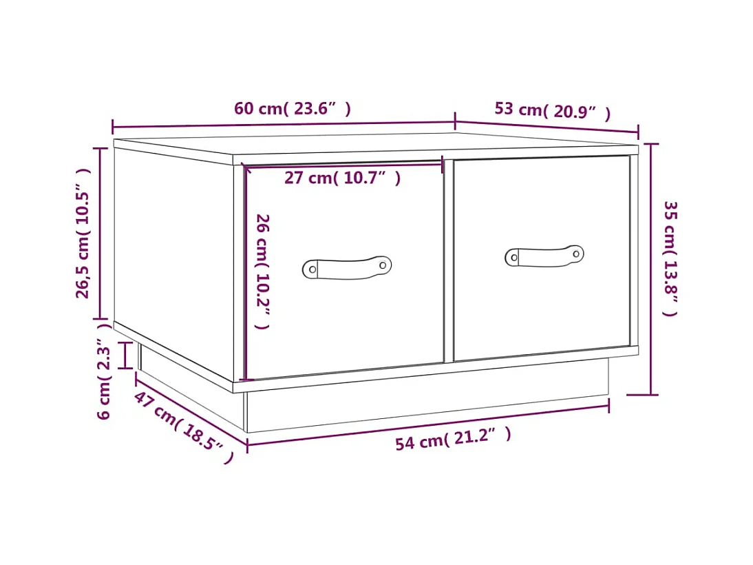 Table basse Gris 60x50x35 cm Bois massif de pin