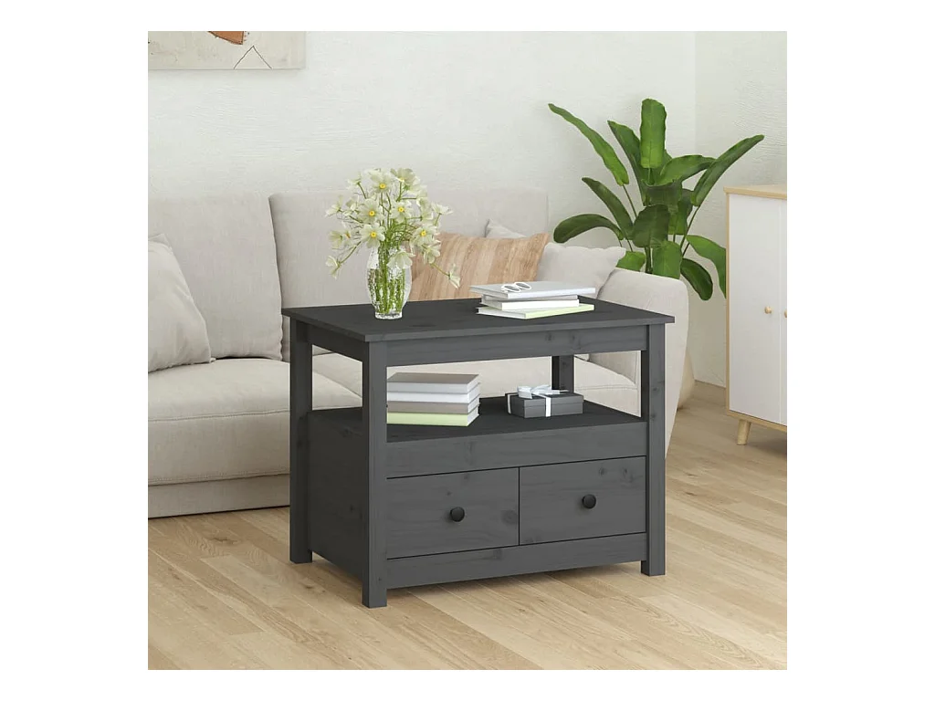 Table basse Gris 71x49x55 cm Bois massif de pin