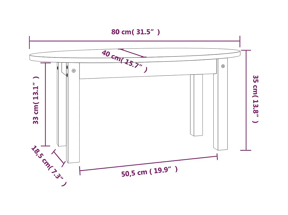 Table basse Gris Ø 40x60 cm Bois massif de pin