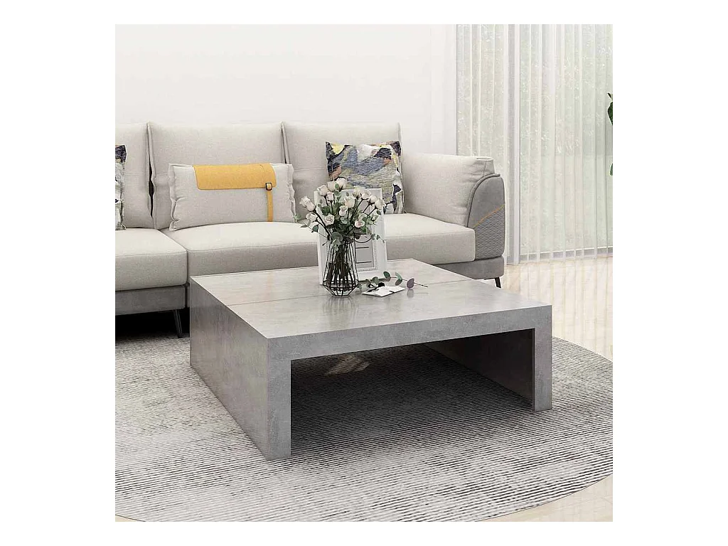 Table basse gris béton 100x100x35 cm bois d'ingénierie