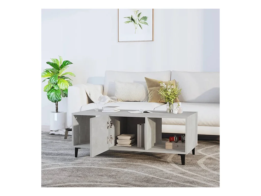 Table basse gris béton 102x50x36 cm bois d'ingénierie