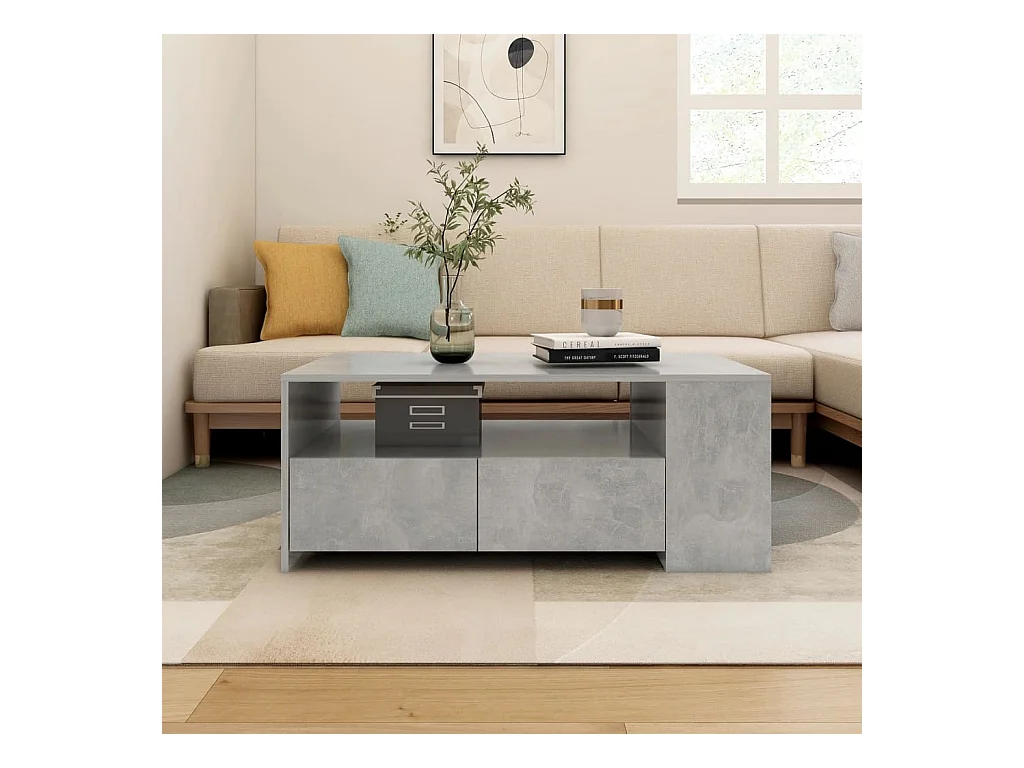 Table basse gris béton 102x55x42 cm bois d'ingénierie