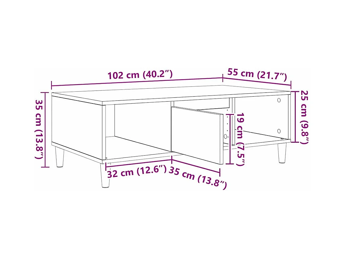 Table basse Sonoma gris 103,5 x 60 x 35 cm Bois d'ingénierie