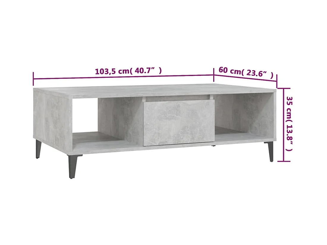 Table basse gris béton 103,5x60x35 cm bois d'ingénierie
