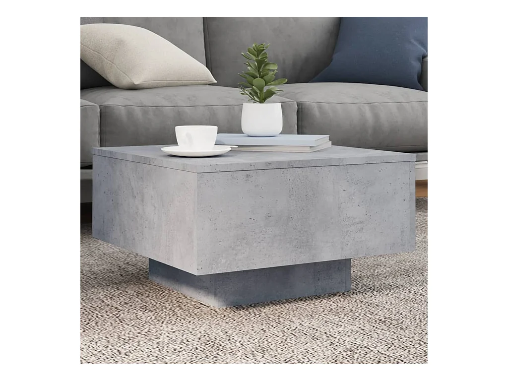Table basse avec lumières LED gris béton 55x55x31 cm