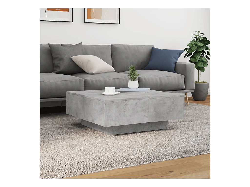 Table basse gris béton 80x80x31 cm bois d'ingénierie