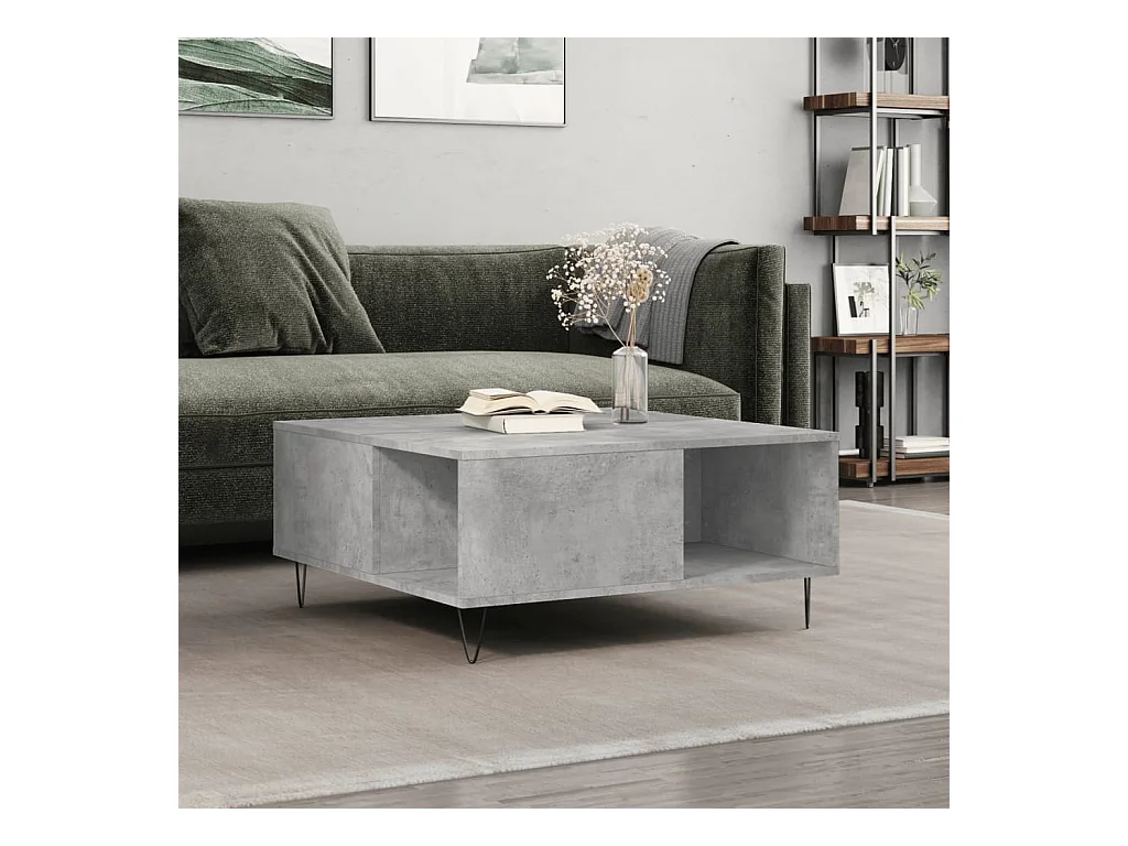 Table basse gris béton 80x80x40 cm bois d'ingénierie