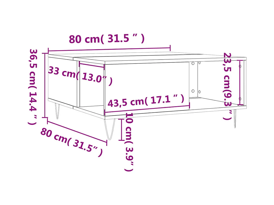 Table basse sonoma gris 80x80x36,5 cm bois d'ingénierie