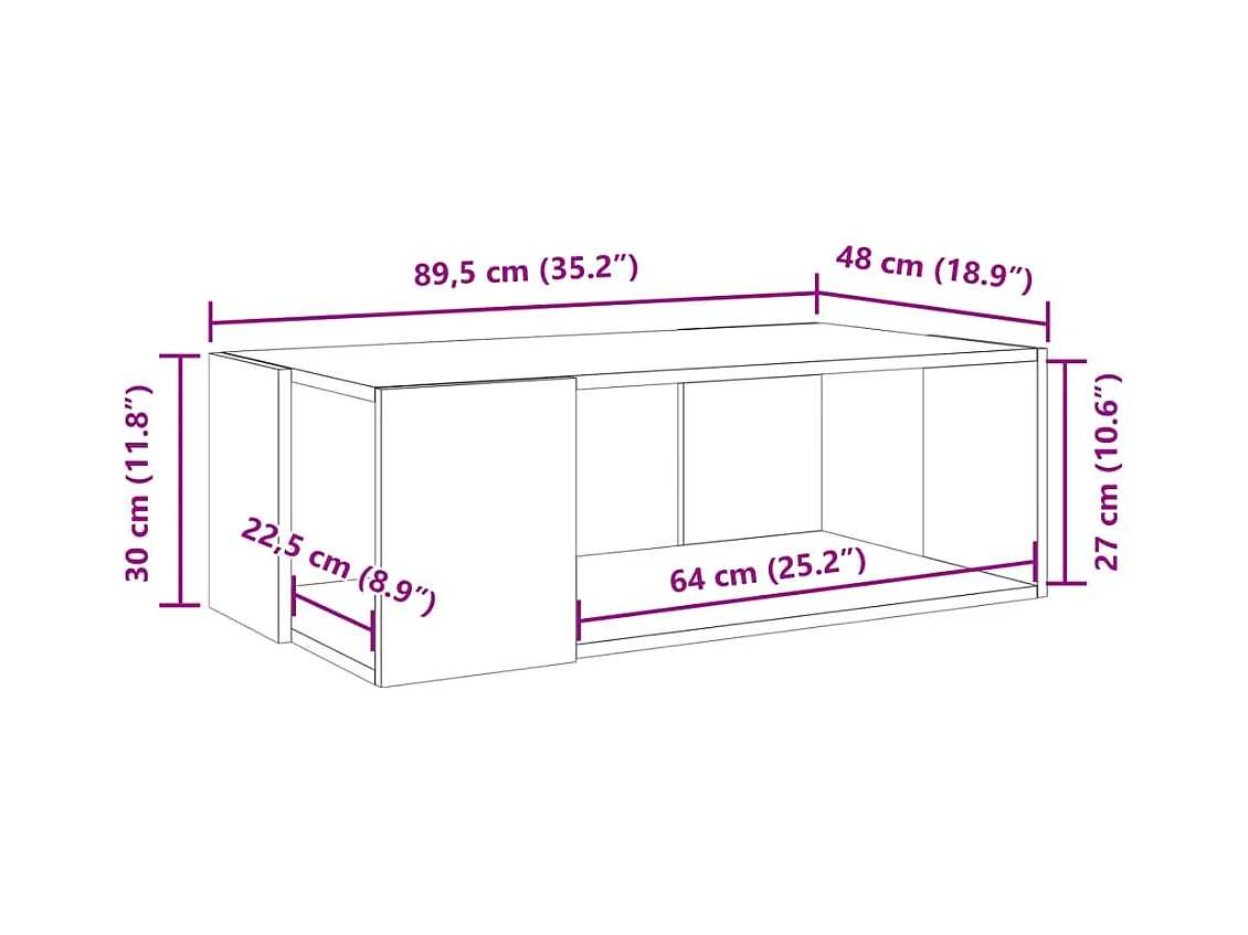 Table basse gris béton 89,5x48x30 cm bois d'ingénierie