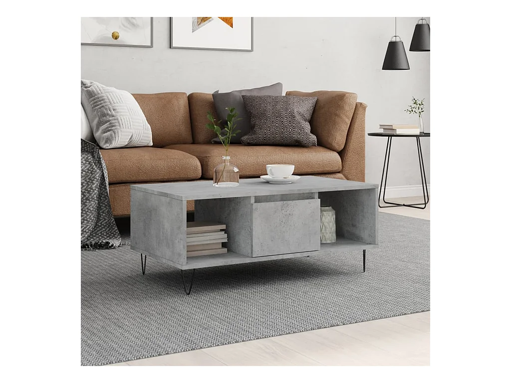 Table basse Gris béton 90x50x36,5 cm Bois d'ingénierie