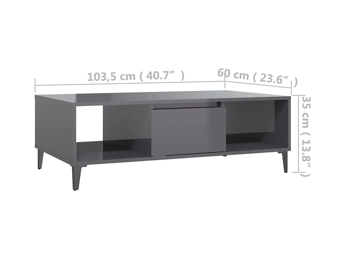 Table basse Gris brillant 103,5x60x35 cm Aggloméré OFR36512 BonneVie Meuble