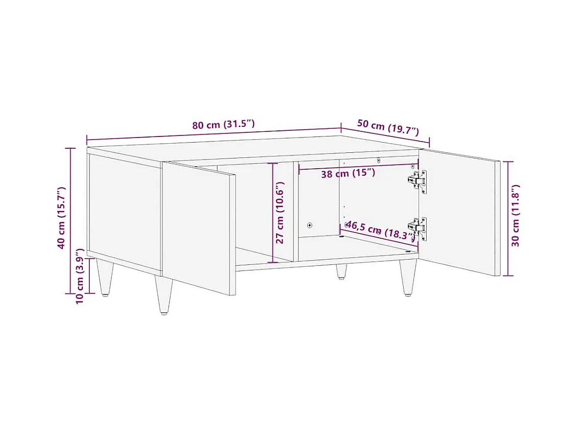 Table basse gris clair 80x50x40 cm bois de manguier massif