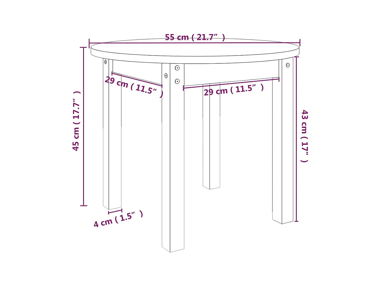 Table basse Gris Ø 55x45 cm Bois massif de pin