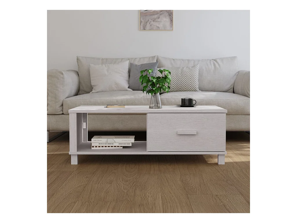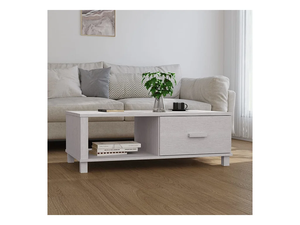 Table basse HAMAR Blanc 100x55x35 cm Bois massif de pin