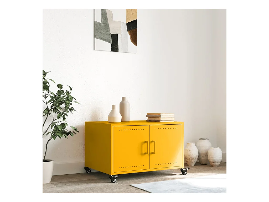 Table basse jaune moutarde 68,5x50x43,5 cm acier laminé à froid