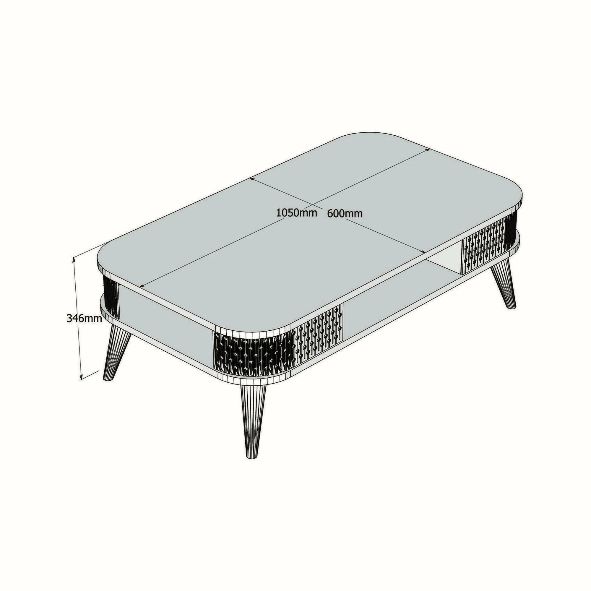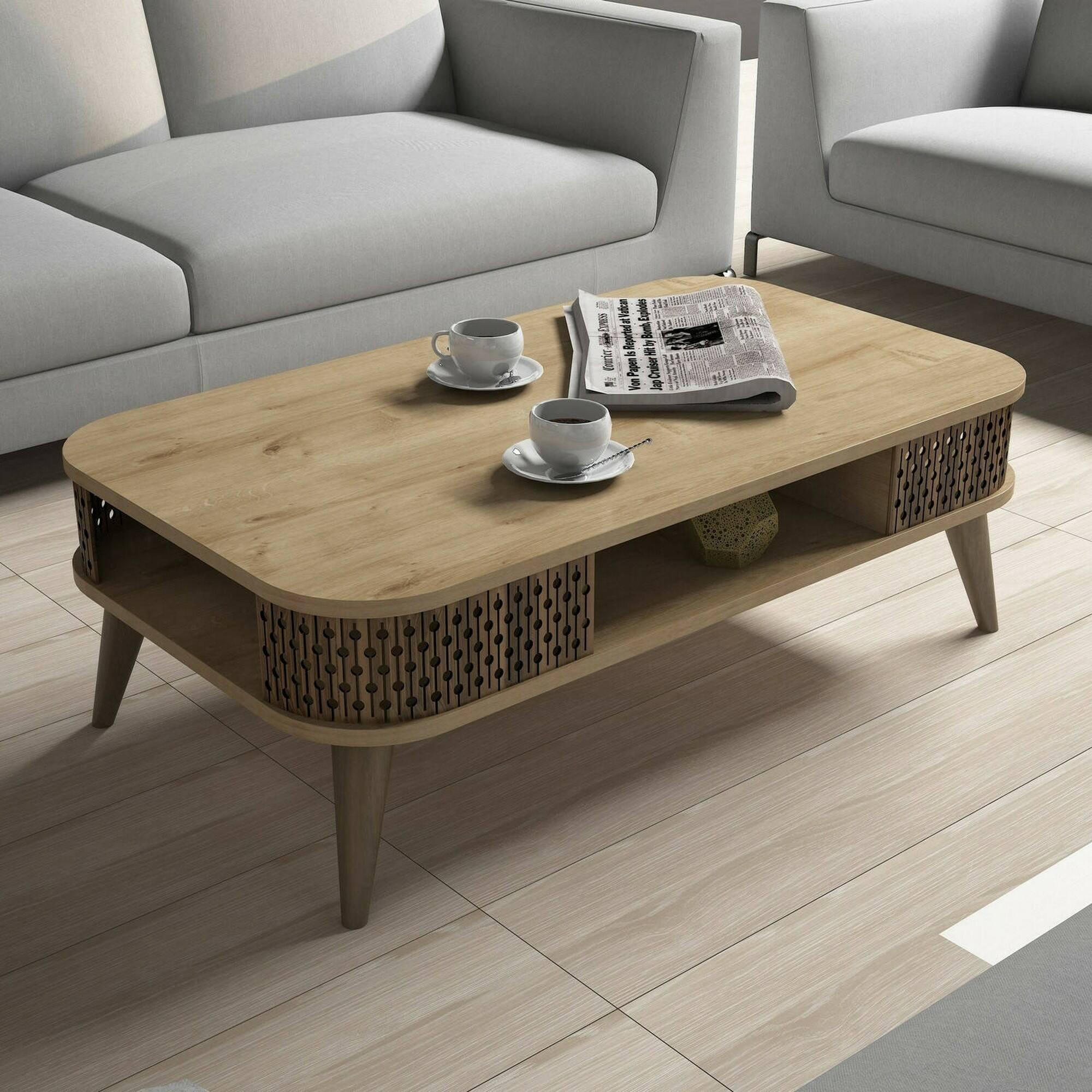 Table basse Kocab, Table basse, Porte-revues pour canapé, Etagère de salon, 105x60h35 cm, Chêne
