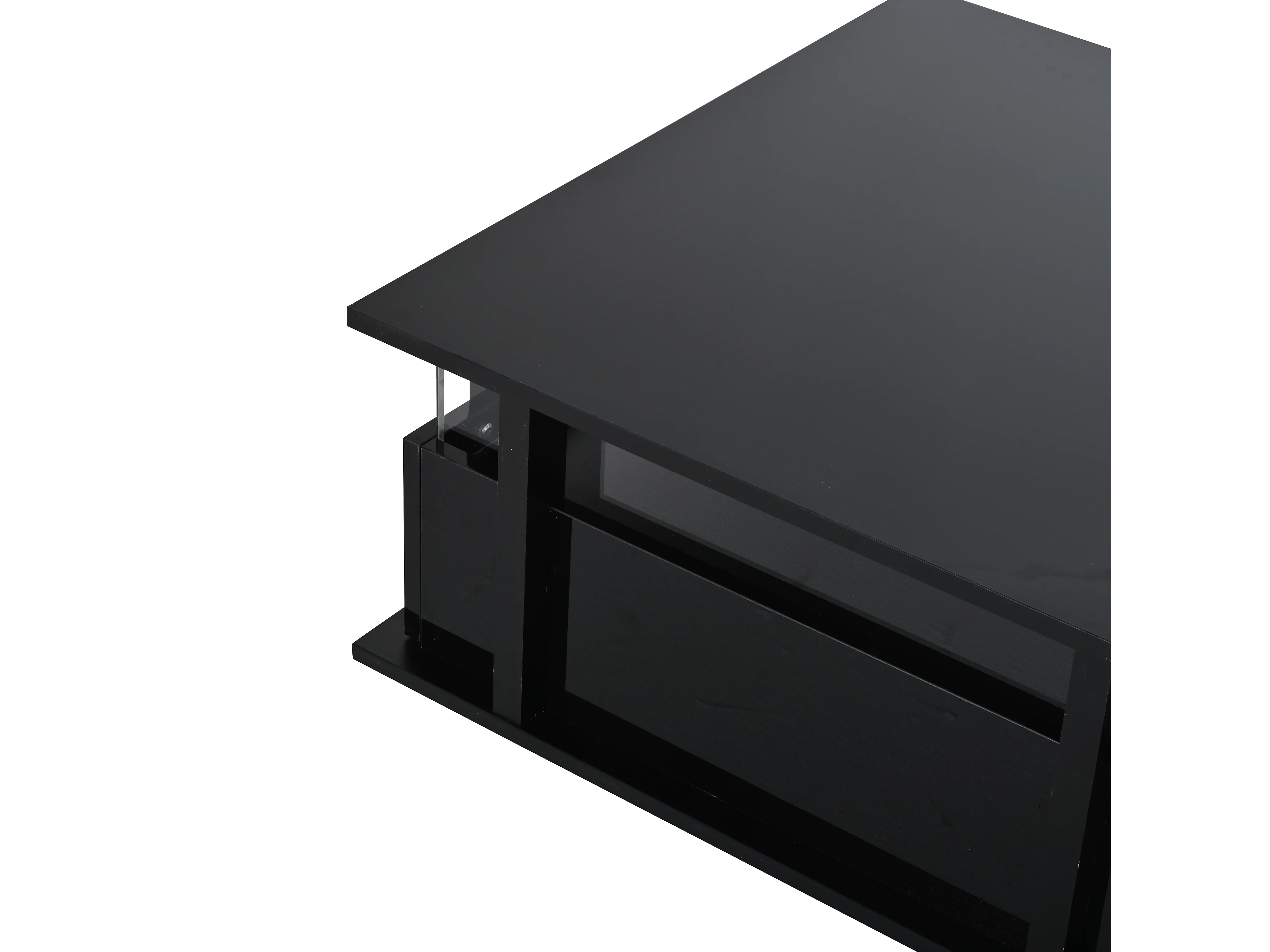Table basse rétractable 70x70x39 cm - avec espace de rangement - Finition brillante - MDF - Noir