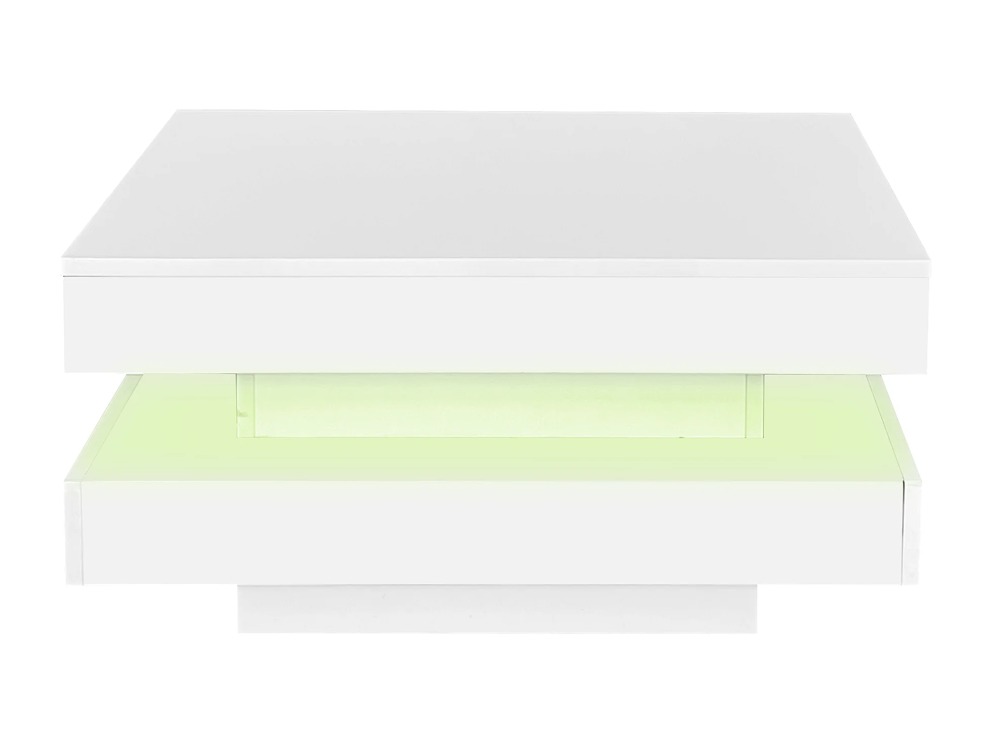Table basse LED carré 72x72x30 cm, table de salon, table d'appoint avec boîte de rangement amovible, coloris blanc