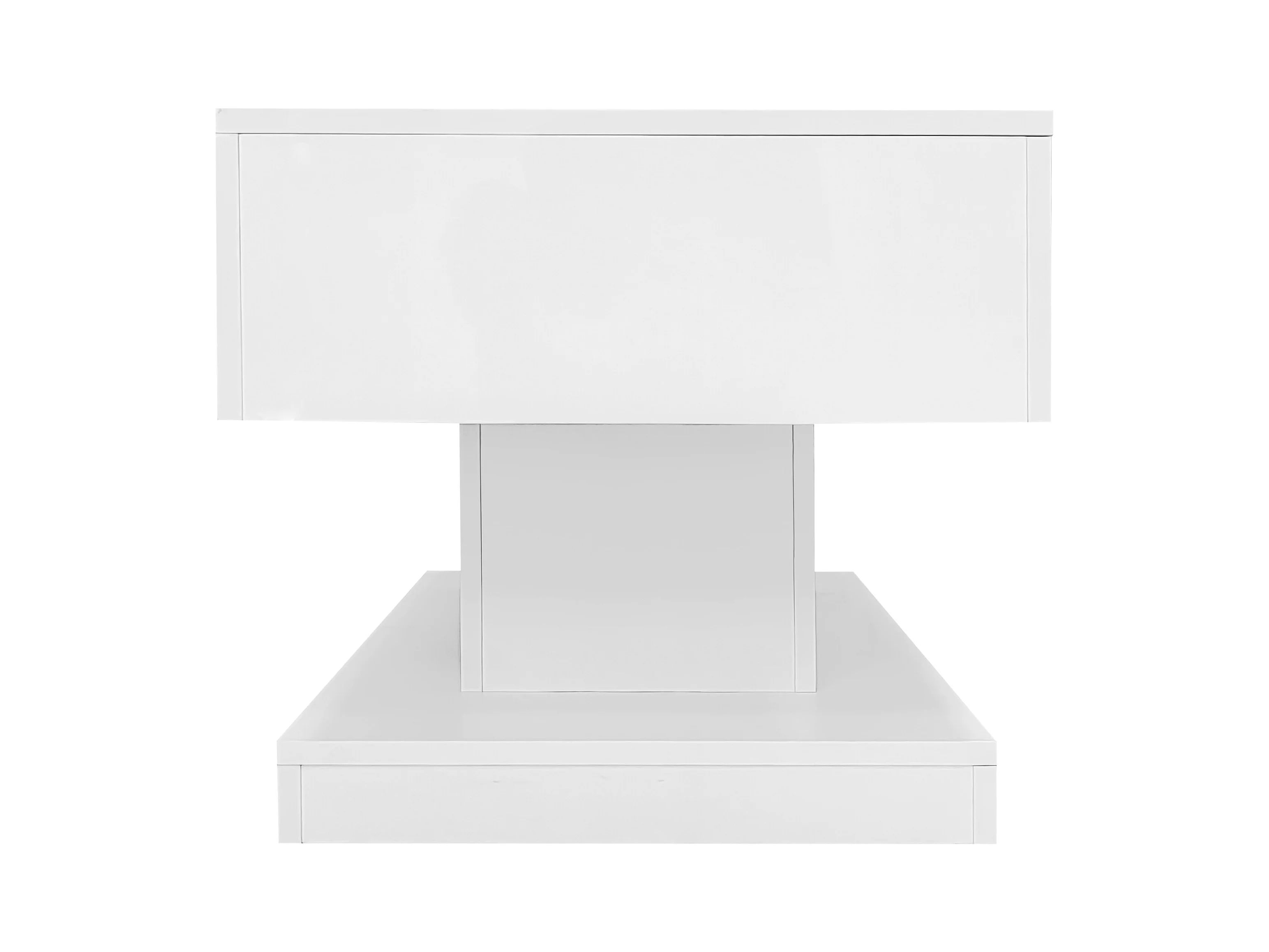 Table basse relevable blanche brillante avec LED et tiroir, panneaux de particules (100x50x55cm)