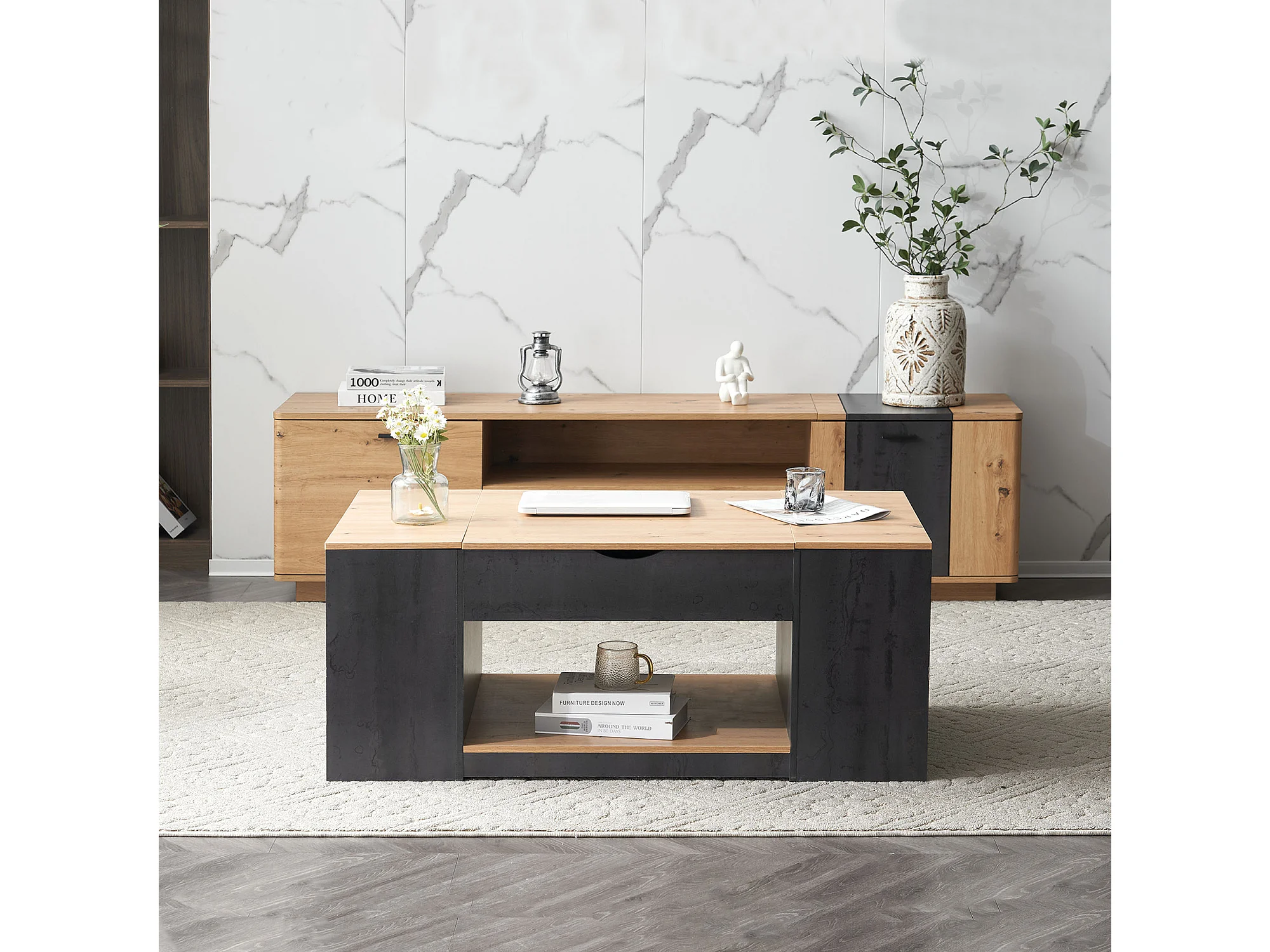 Table basse multifonction dépliable grande capacité gris foncé clair pour salon