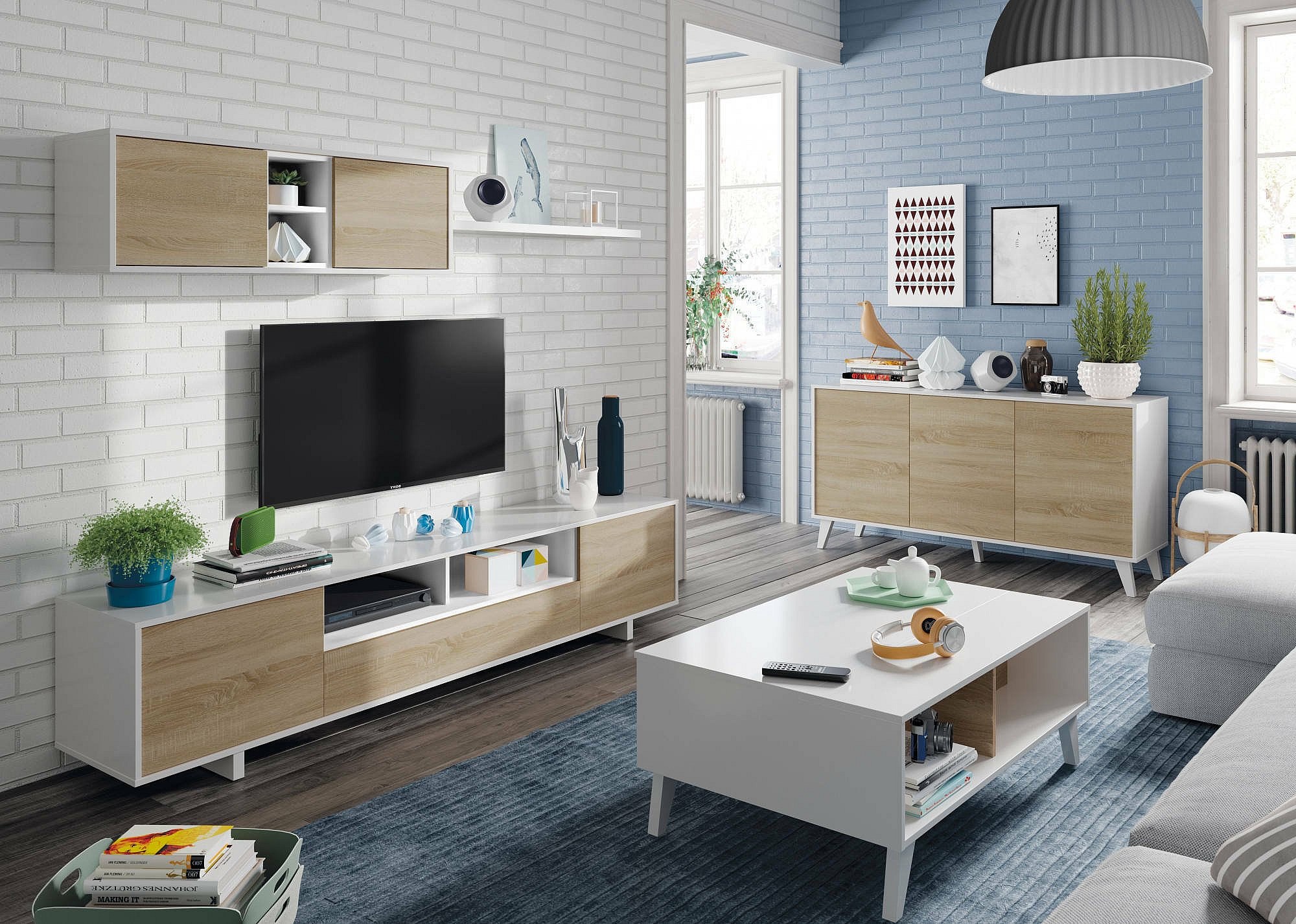 Table basse Evansville, Table basse, Table basse de salon, 100x50h40 cm, Chêne et Blanc