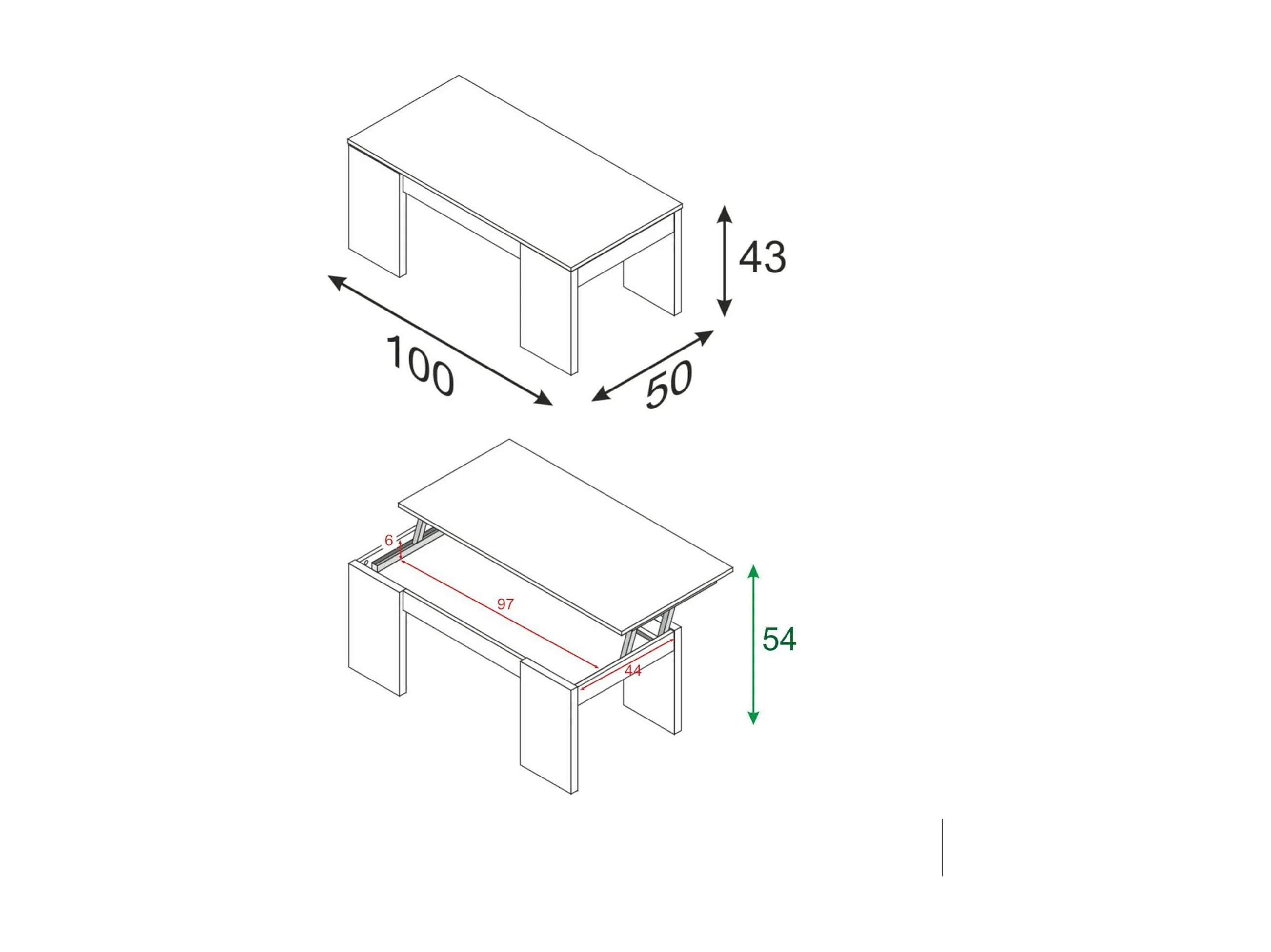 Table basse Dleal, Table basse avec plateau relevable, Table basse de salon, 100x50h45/56 cm, Blanc brillant