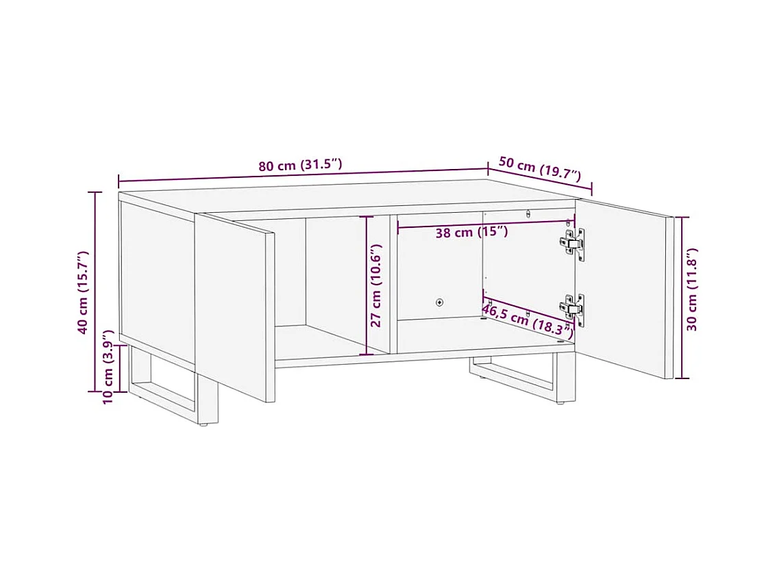 Table basse 80x50x40 cm bois de manguier massif