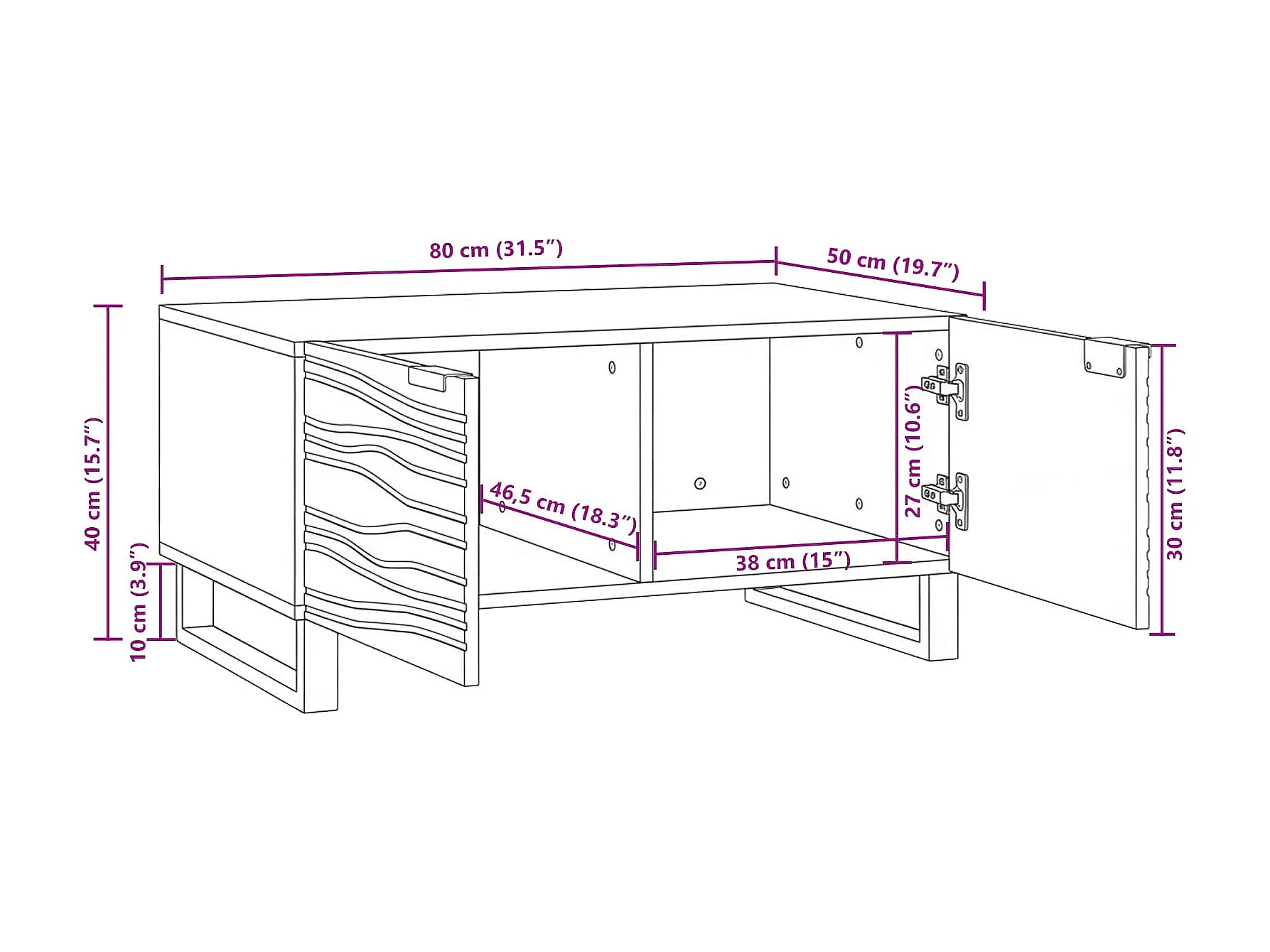 Table basse Marron et Noir 80 x 50 x 40 cm Bois d'acacia massif
